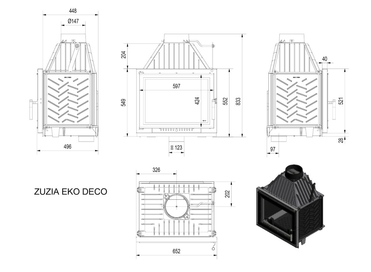 Kamineinsatz Gusseisen KRATKI ZUZIA ECO DECO 12 kW Ø 150