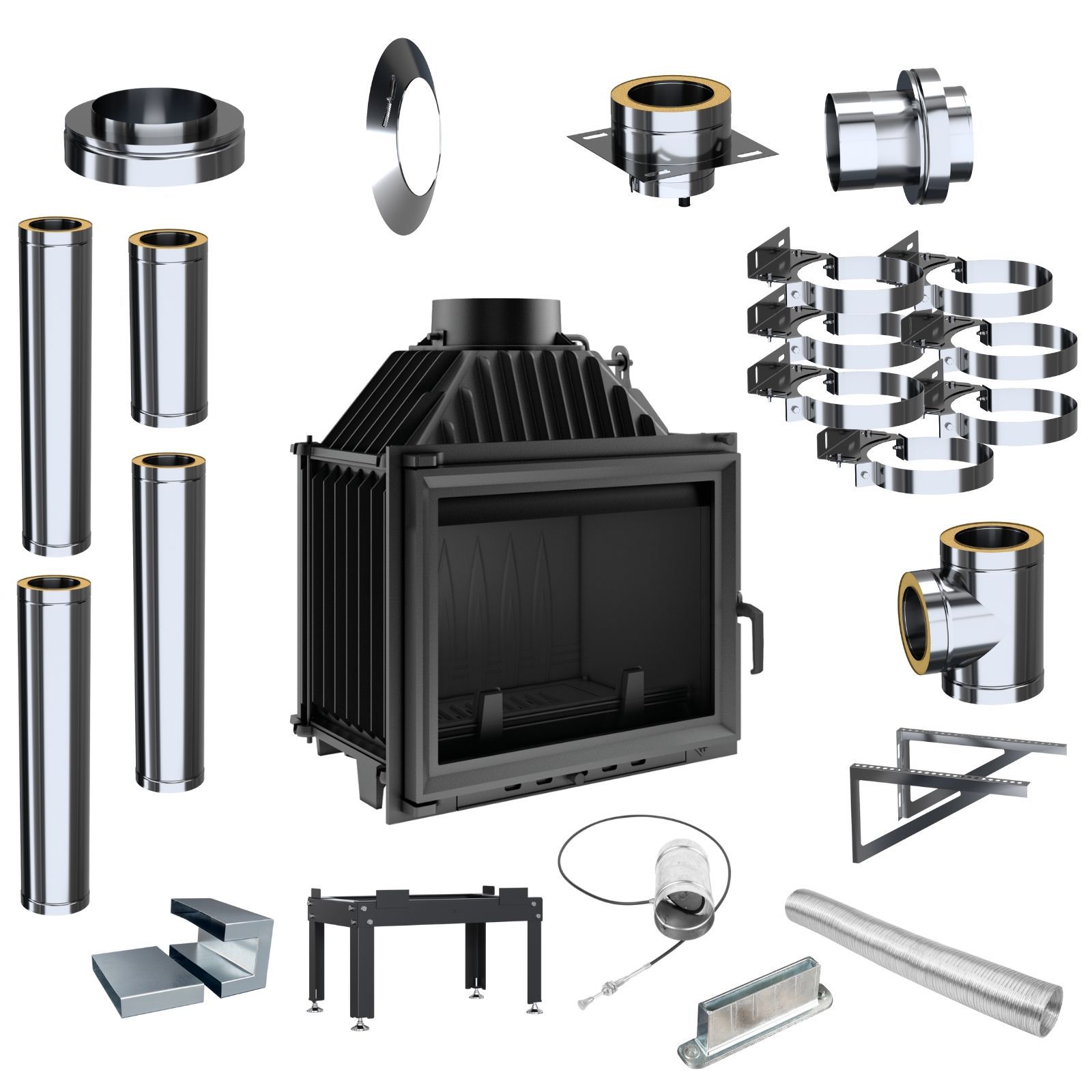 Kamineinsatz KRATKI Maja 8kW Ø200 Gusseiseneinlass Externes Schornsteinset