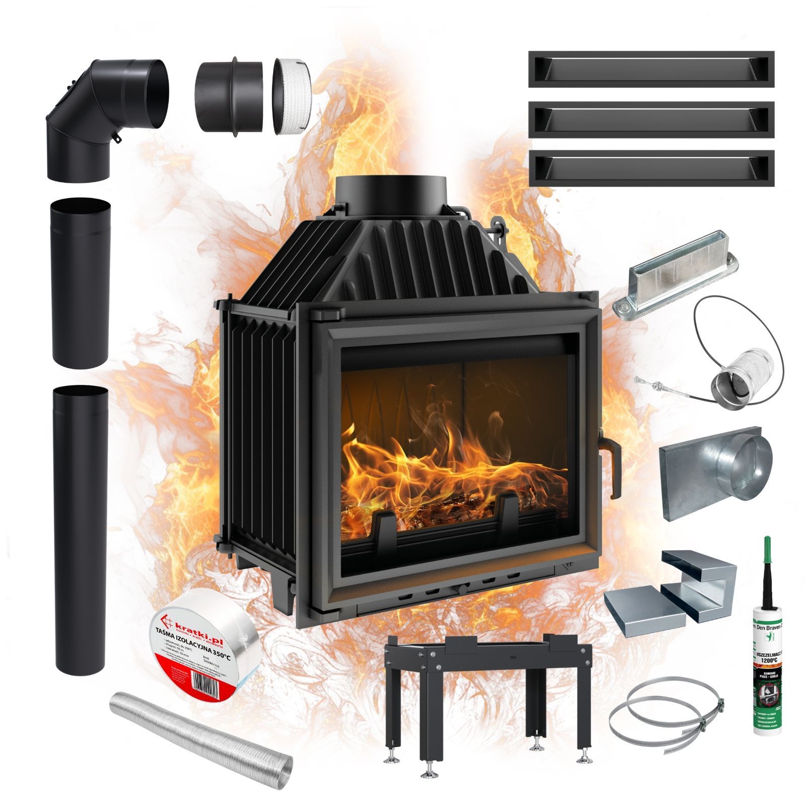 Kamineinsatz KRATKI MAJA 8kW Ø 200 Ökodesign Gusseisen SET