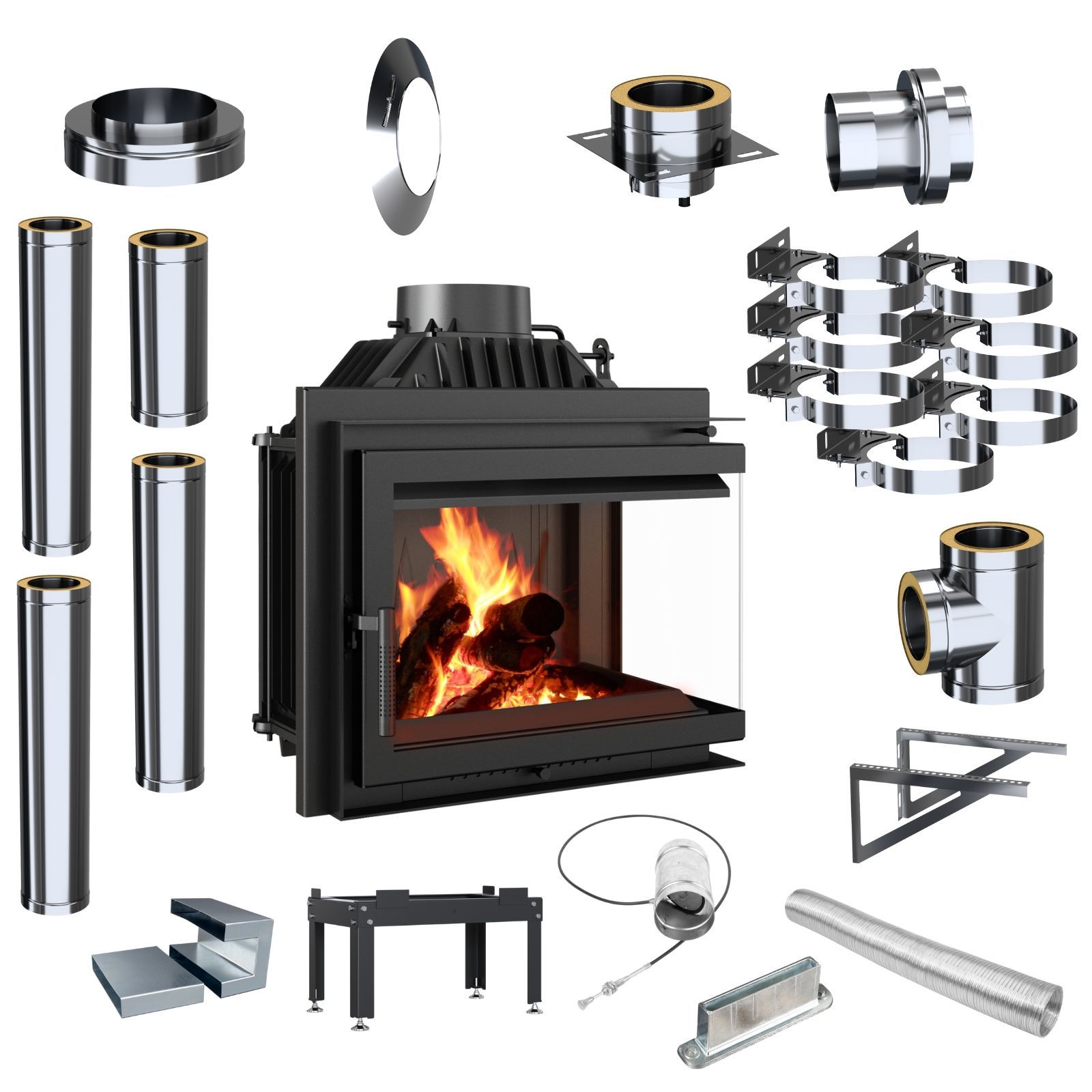 Kamineinsatz KRATKI Simple Right 8 kW mit Einlass-Set für externen Schornstein