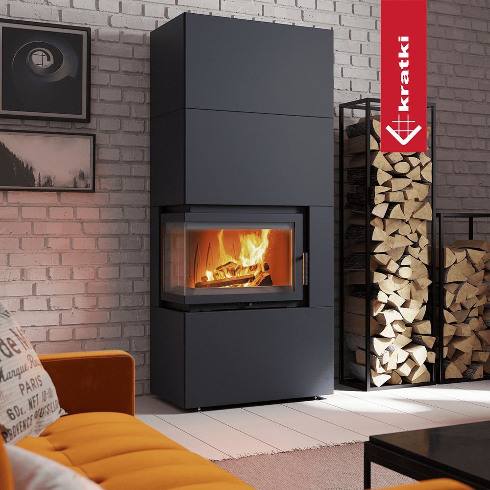 Kamineinsatz SIMPLE BOX 8kW Ø200 Links Schwarz | BImSchV II & Türfeder