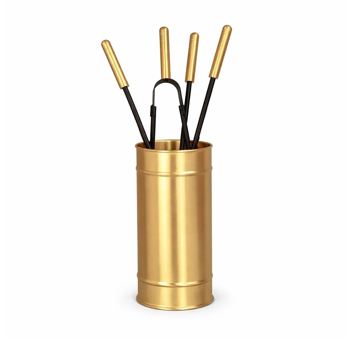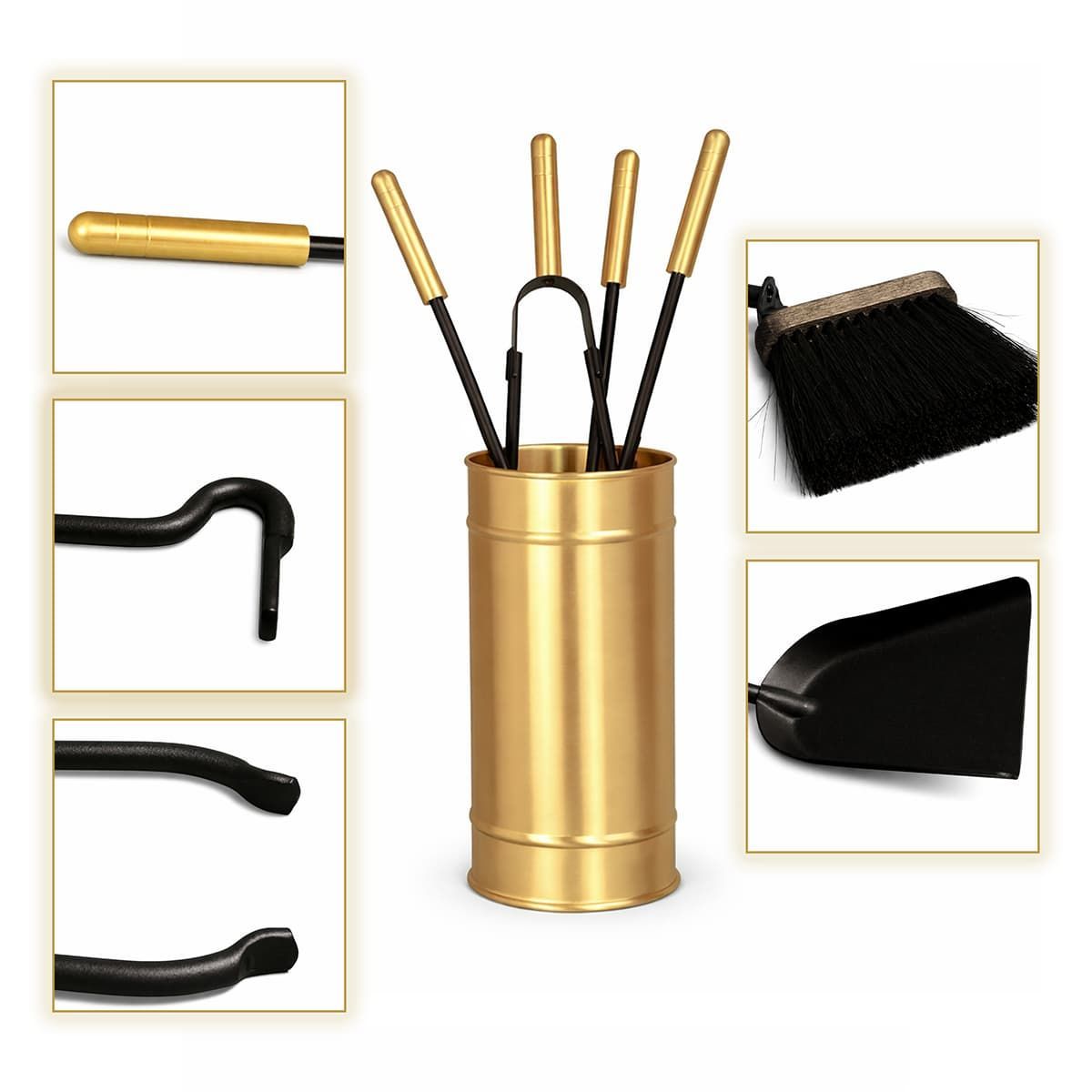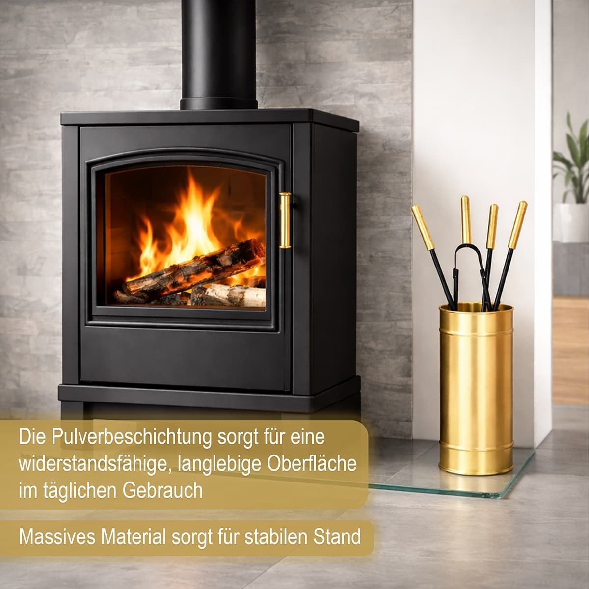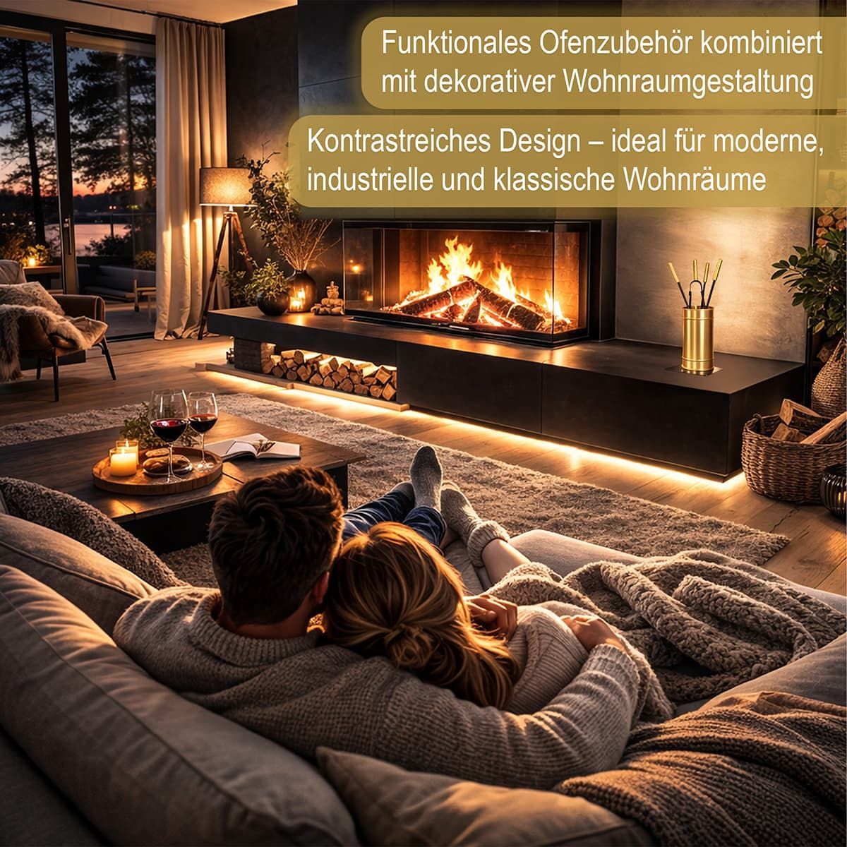 Kamingarnitur stilvoll Messing matt gebürstet - Kaminbesteck Ofenbesteck Schwarz