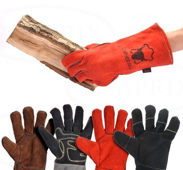 Kaminhandschuhe Grillhandschuhe BBQ Kamin Hitzebeständig Ofen Leder Grillhandschuhe