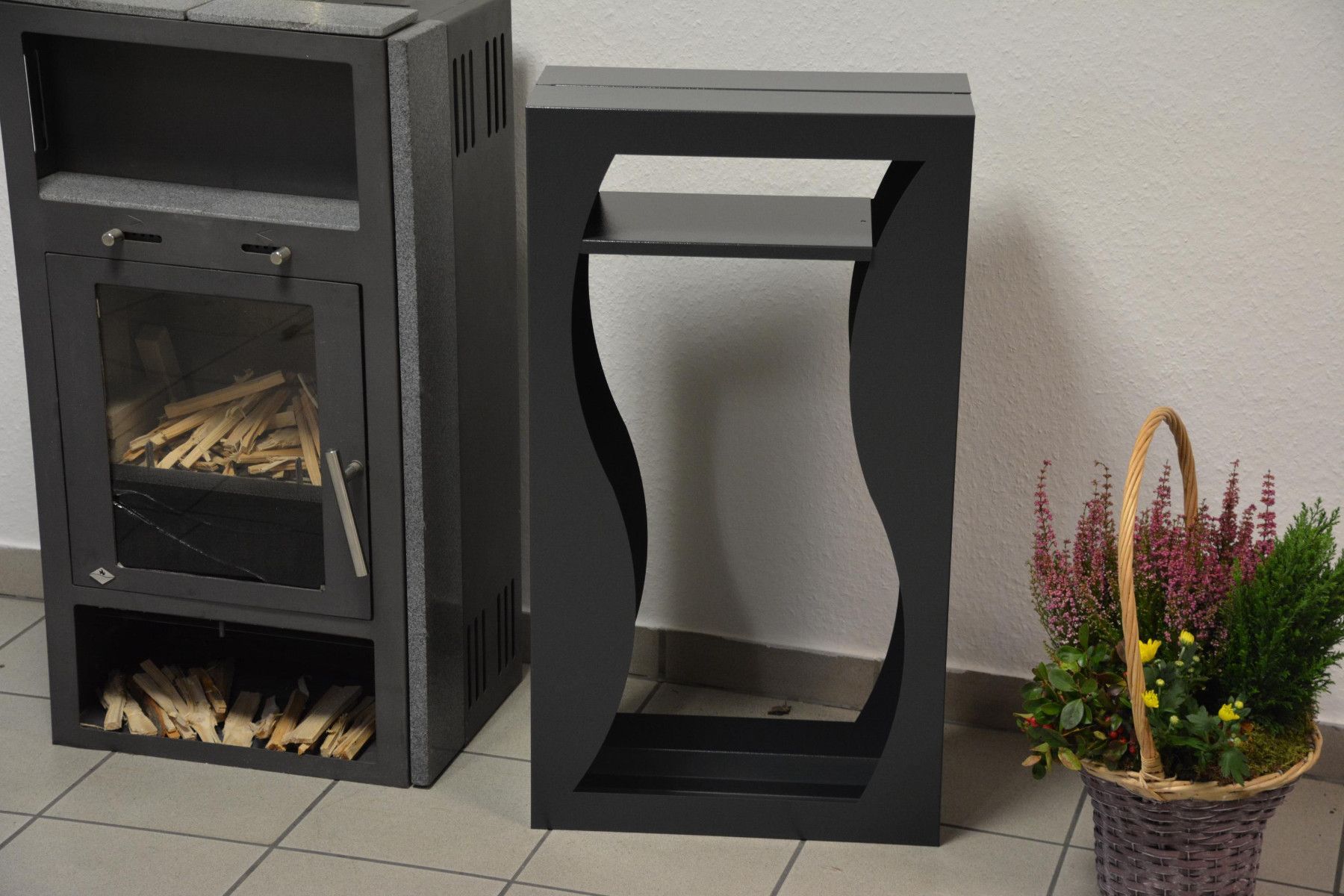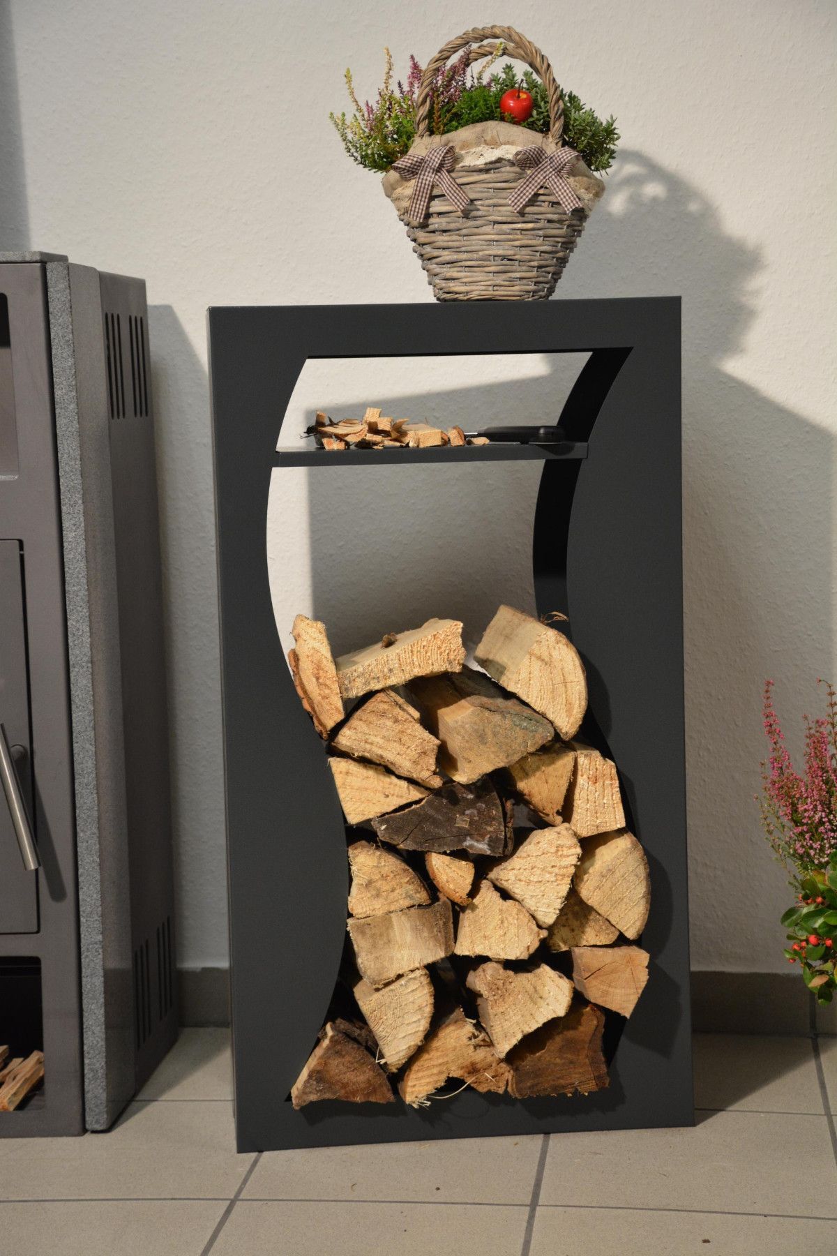 Kaminholzregal Brennholzregal Innen Metall WELLE mit Fach - Anthrazitgrau
