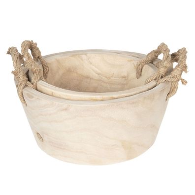 • Clayre & Eef Aufbewahrungskorb 2er Set Ø 36 / Ø 29 cm Beige Holz