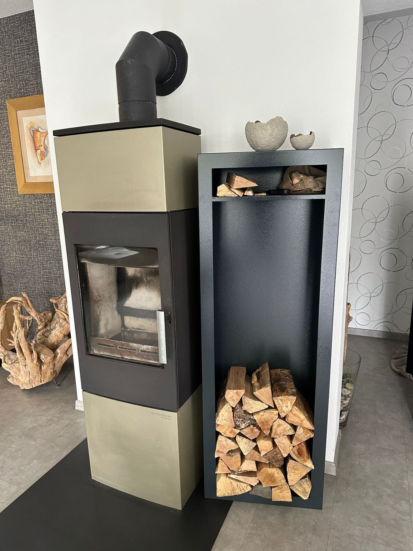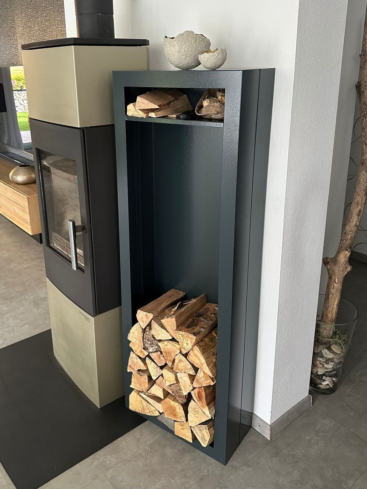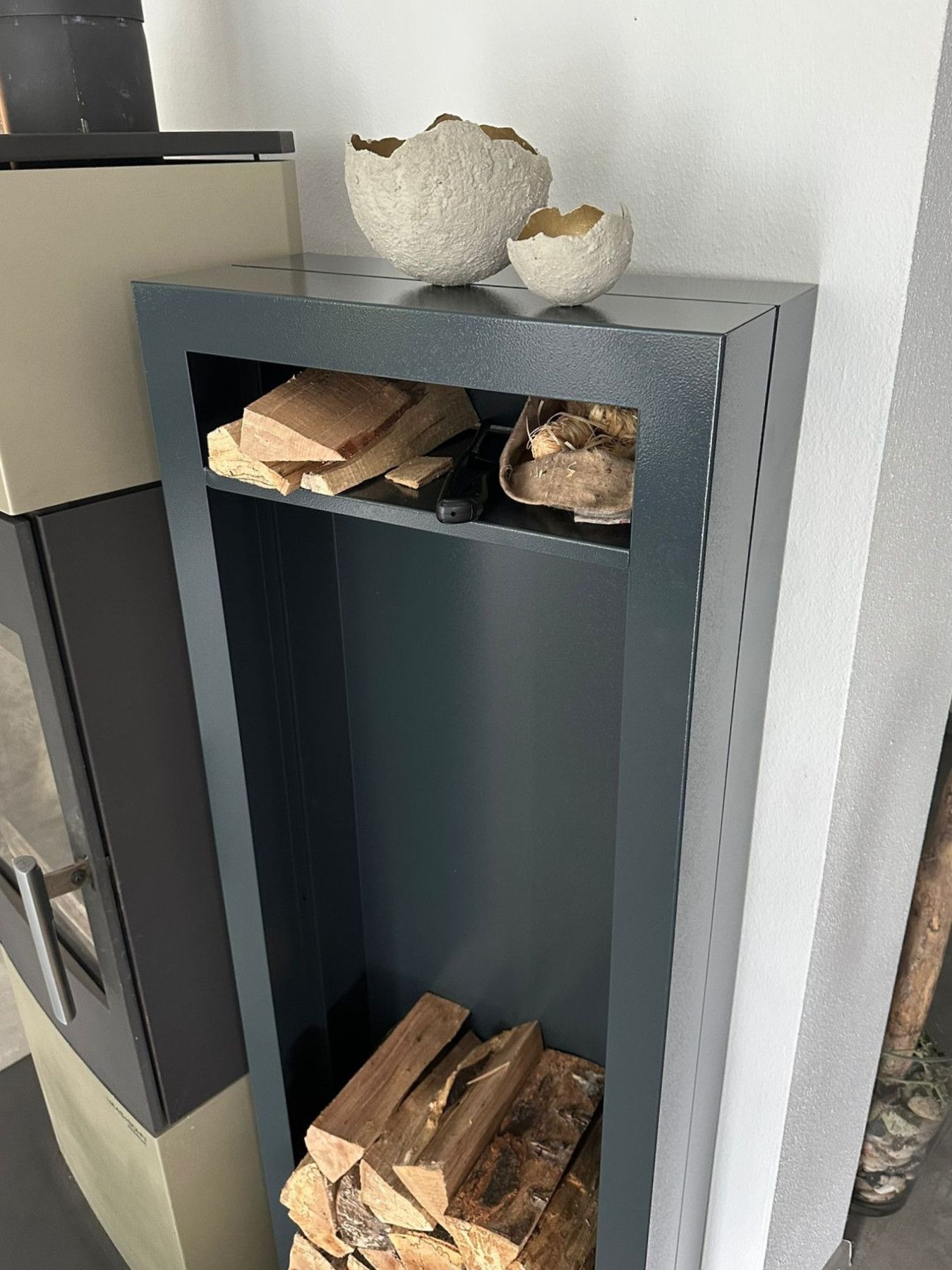 Kaminholzregal Innen aus Metall Rechteck mit Fach & Rückwand - Anthrazitgrau