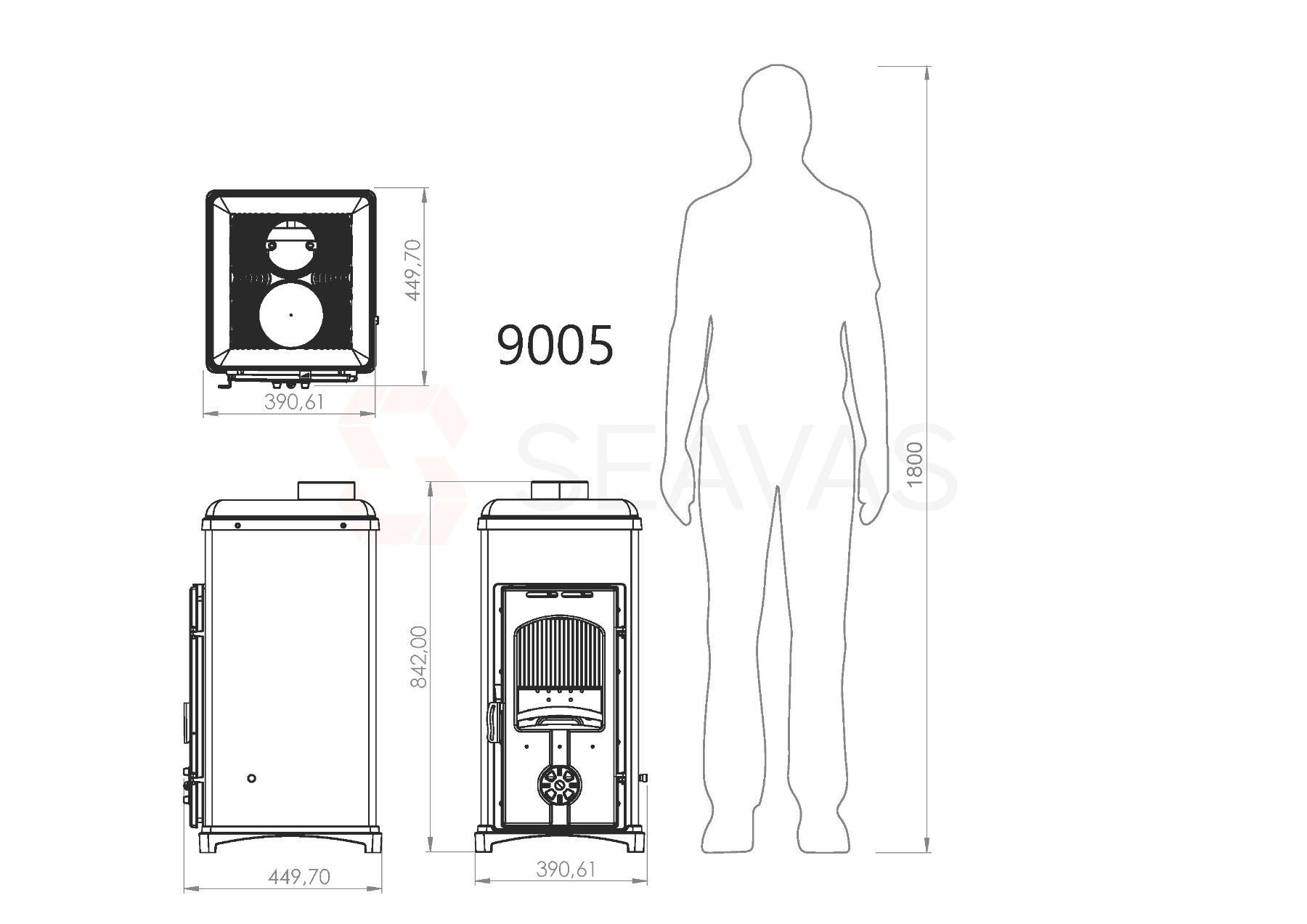 Kaminofen 9005: Kompakte Kraft mit 6,40 kW, EEK A + , BImSchV, div. Farben