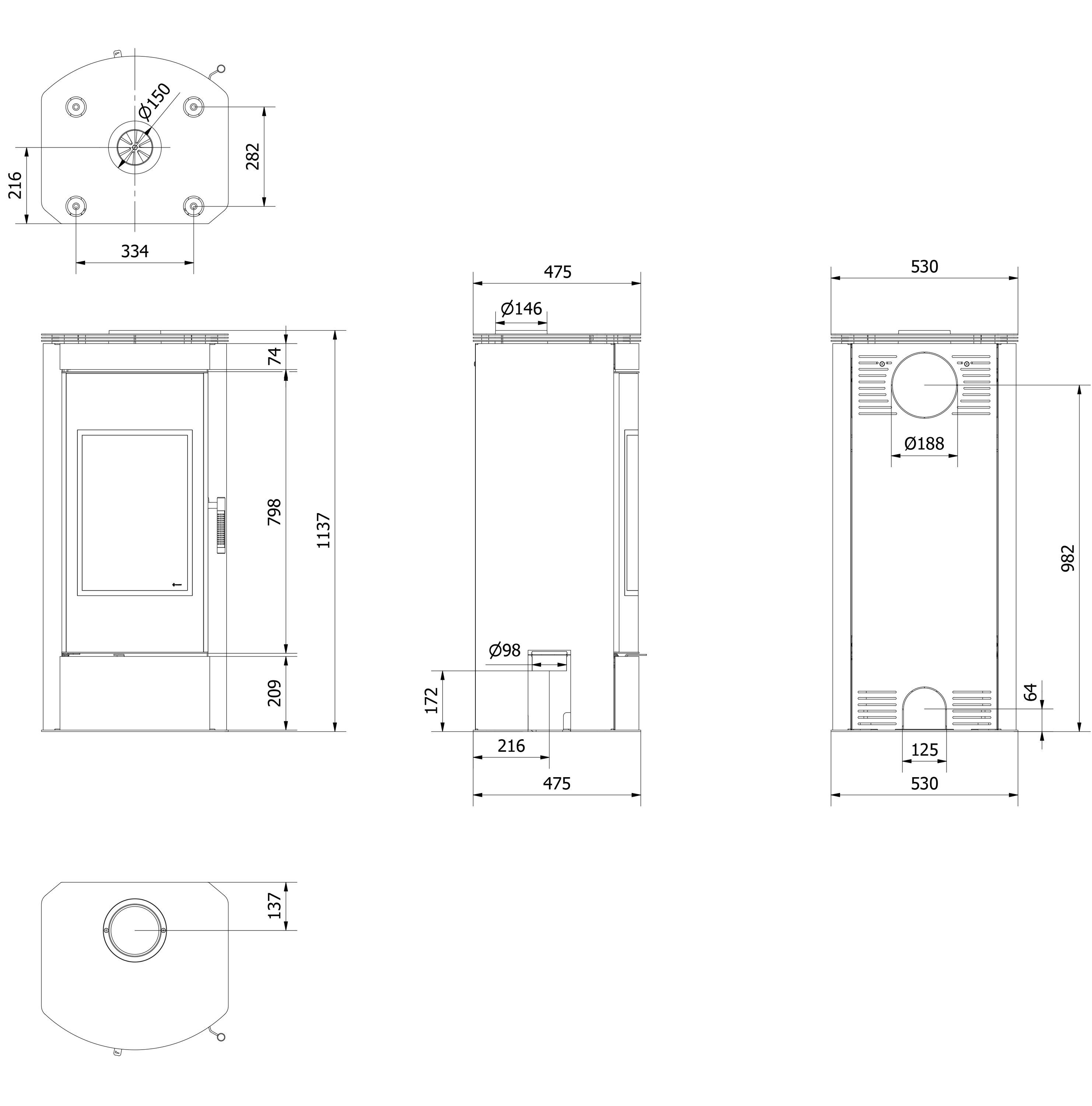 Kaminofen aus Stahl KRATKI TITAN Panorama Ø 150 11 kW
