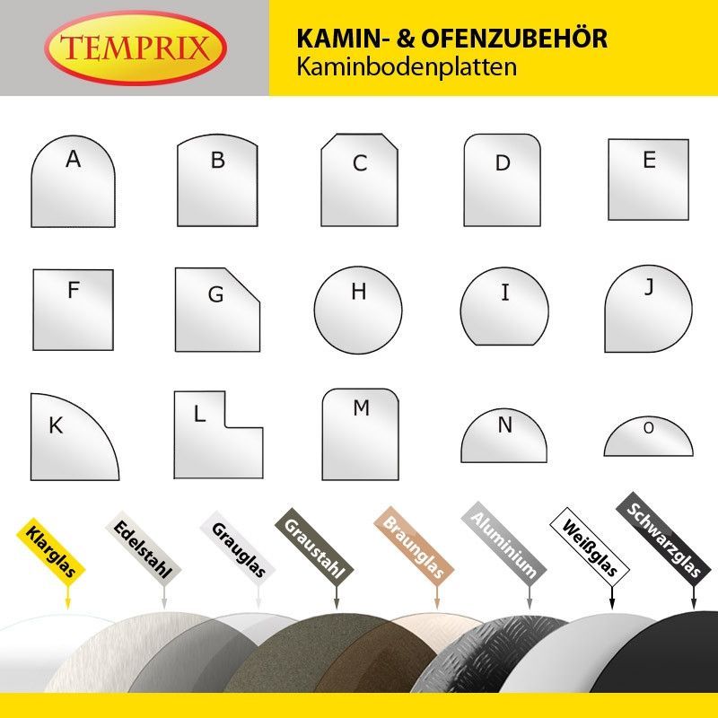 Kaminofen Bodenplatte aus Glas, Stahl, Edelstahl, Aluminium Funkenschutzplatte Ofen