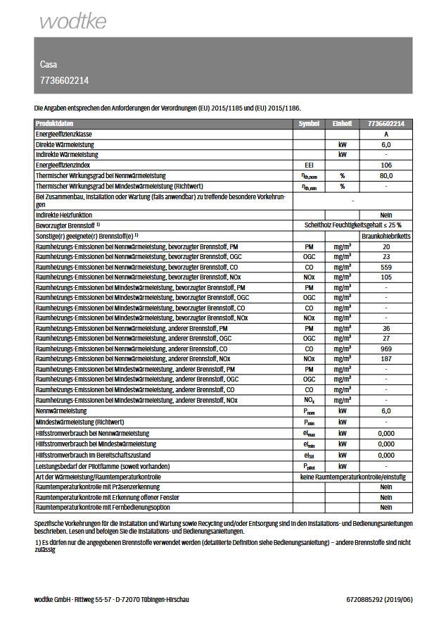 Kaminofen Wodtke Casa Glas black 6 kW wandhängend Scheitholz Kamin Holzofen