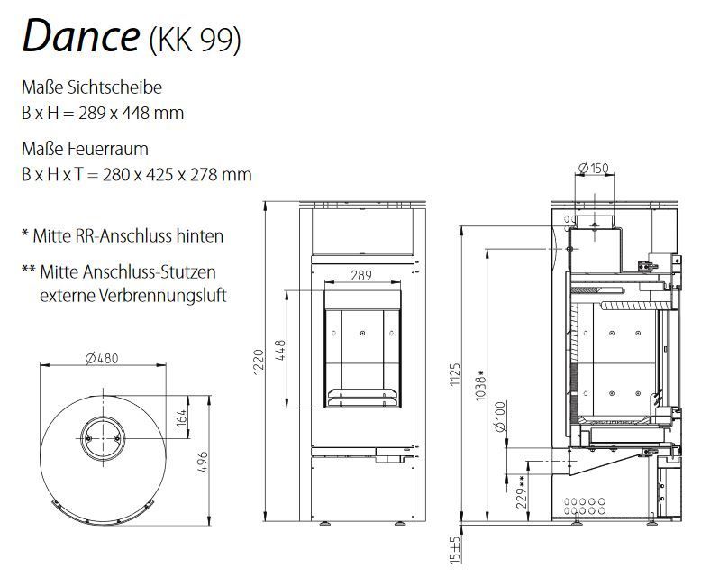 Kaminofen Wodtke Dance 7 kW black 091900 Air Control Ofen Kamin Holzofen
