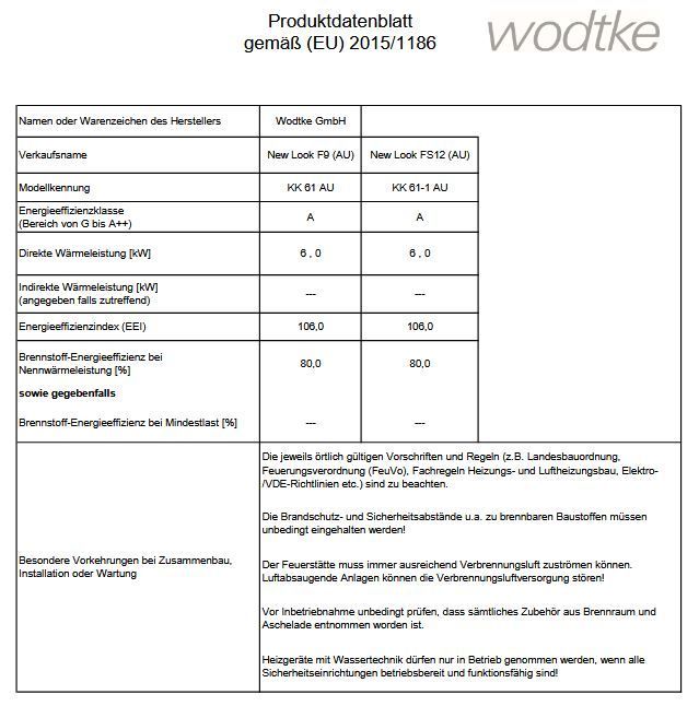 Kaminofen Wodtke NEW LOOK FS9 HiClean 6 kW 086005 Scheitholz Kaminofen Ofen
