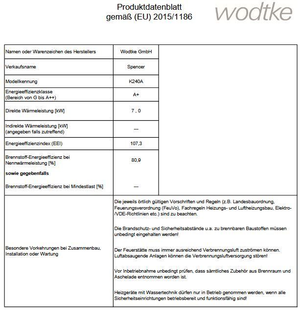 Kaminofen Wodtke Spencer 7 kW black 088000 raumluftunabhängig Kamin Ofen