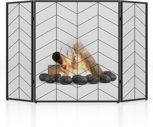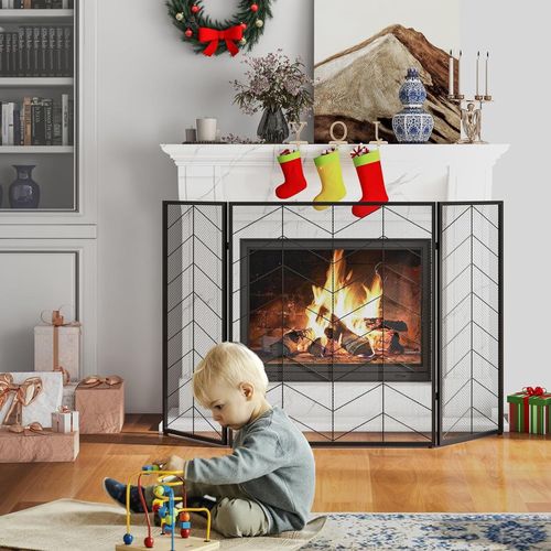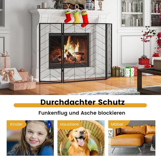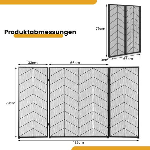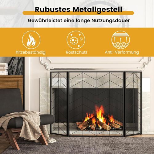 Kaminschutzgitter, 3-teilige Faltbare Kamingitter, Kamin Funkenschutz, 132 x 79 cm