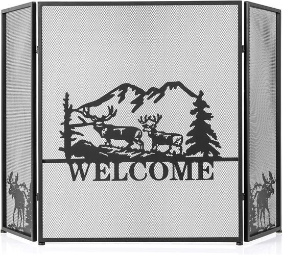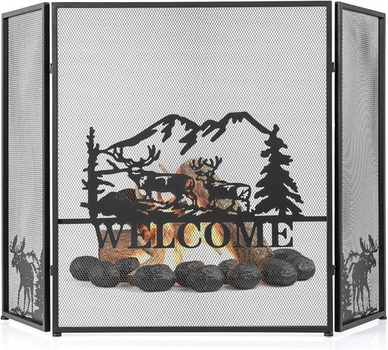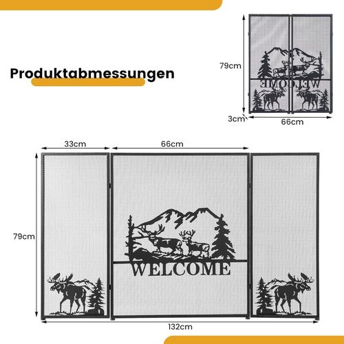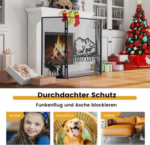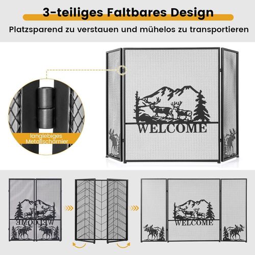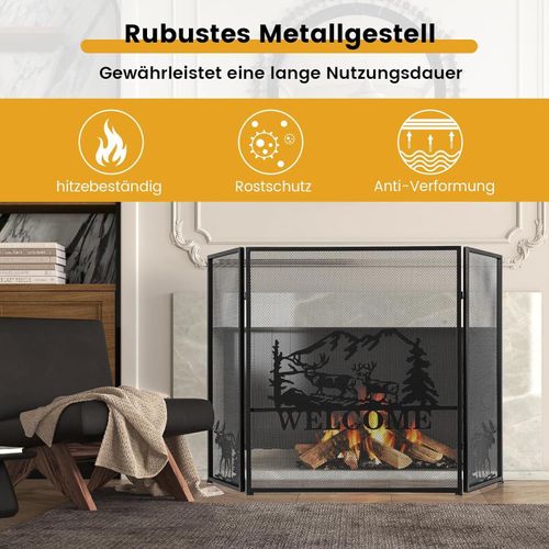 Kaminschutzgitter, 3-teilige Faltbare Kamingitter, Kamin Funkenschutz, 132 x 79 cm