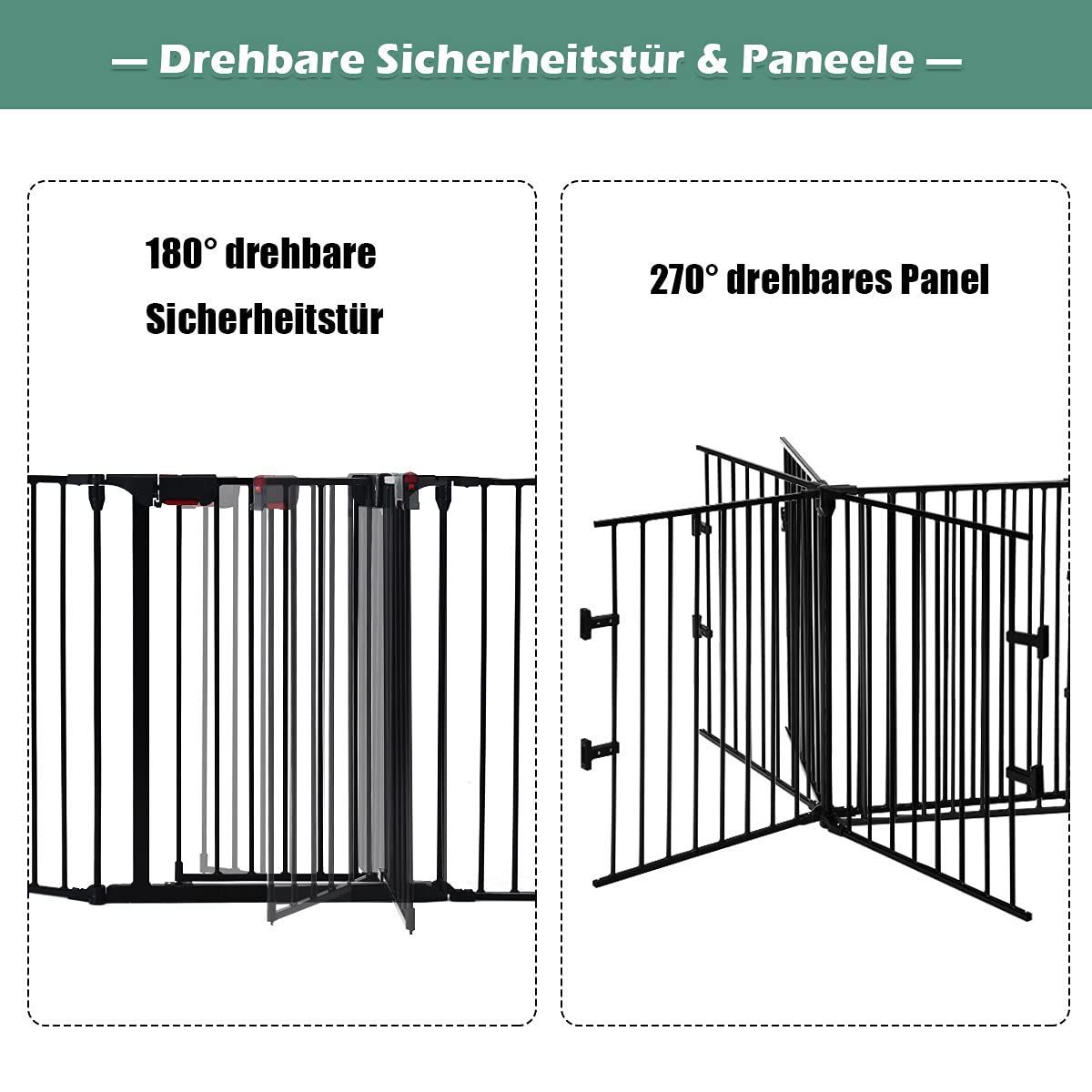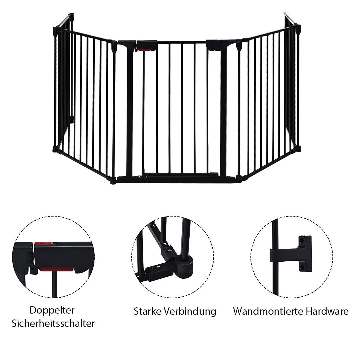 Kaminschutzgitter Metall 5 in 1 Absperrgitter inkl. Schwing Tür Konfigurationsgitter