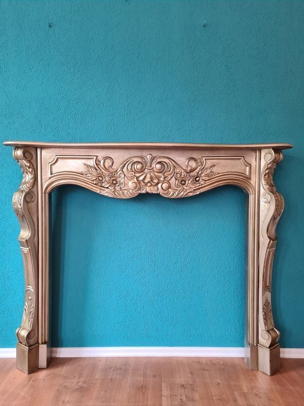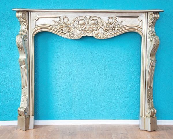 Kaminumrandung Fireplace Kaminverkleidung Deko Massivholz silber