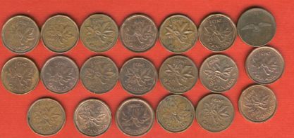 Kanada 1 Cent Münzen (20 verschiedene Jahrgänge ) Lot 85
