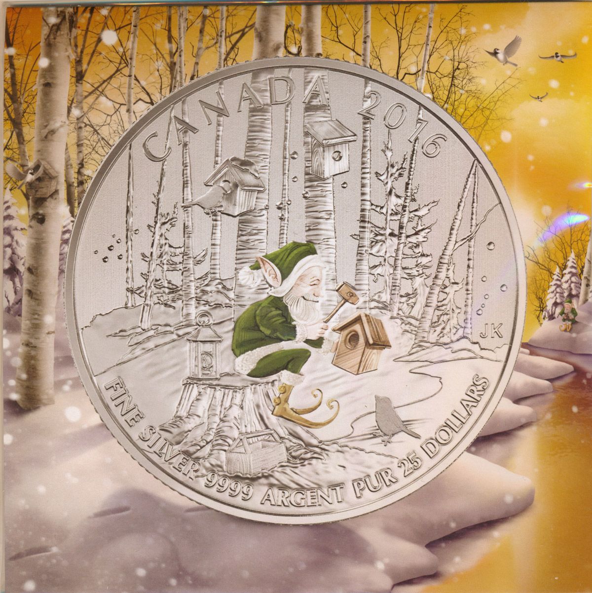 Kanada 25 Dollar 2015 Weihnachtsausgabe Farbmünze im Umschlag Silber*