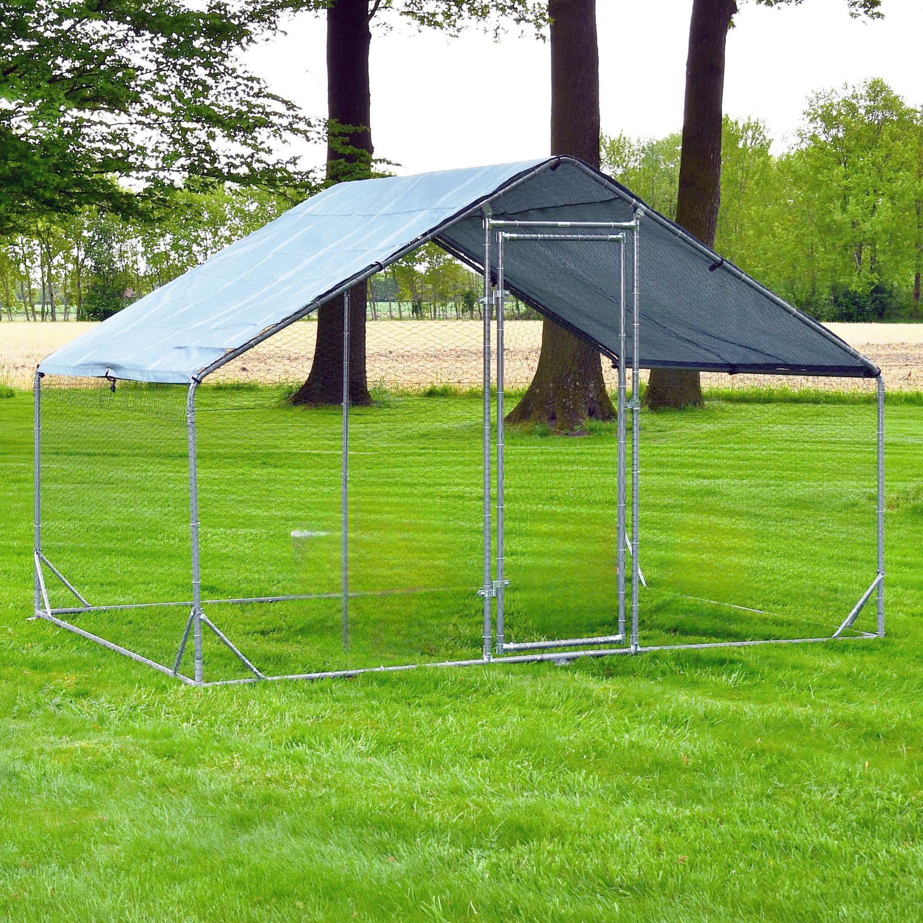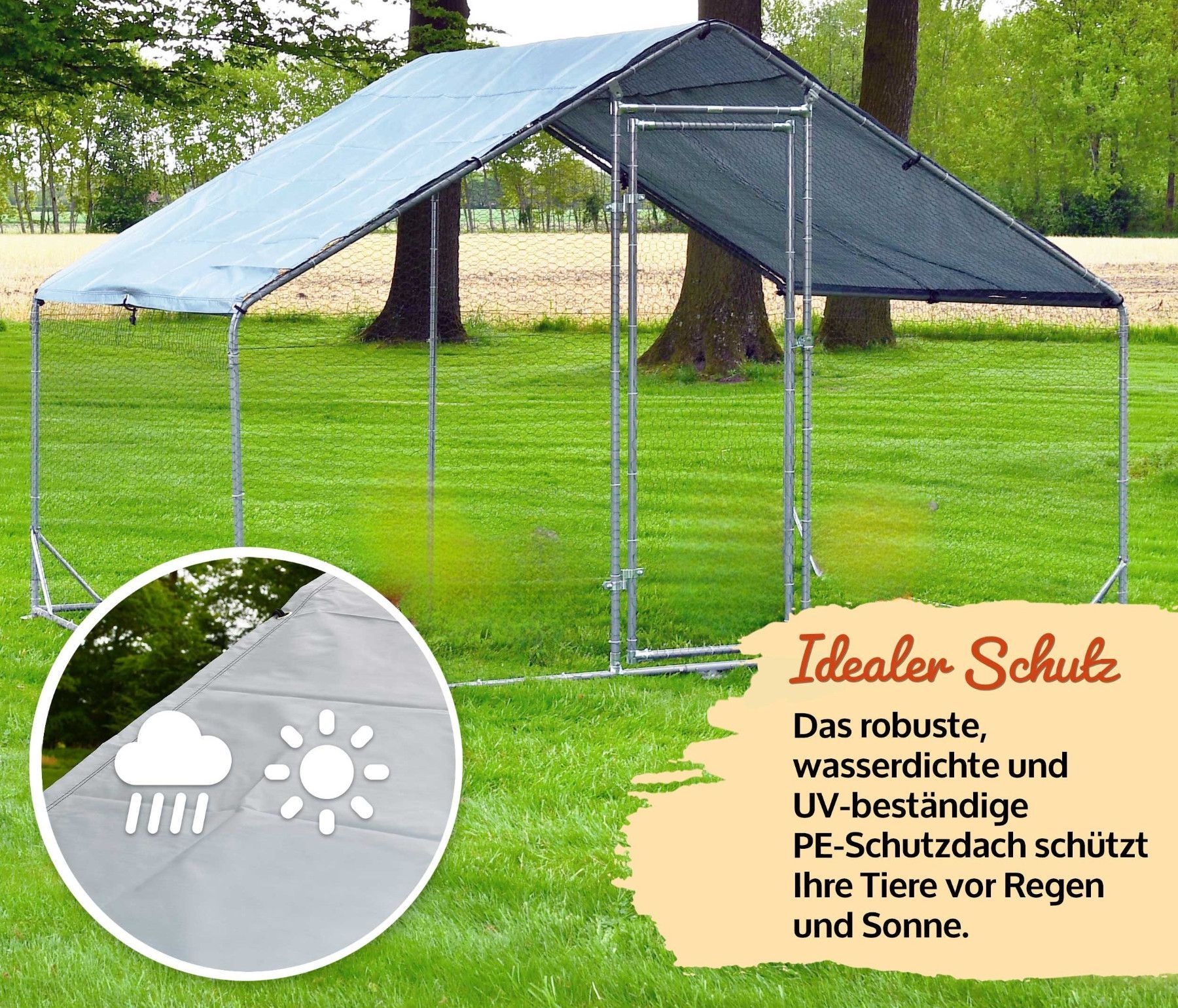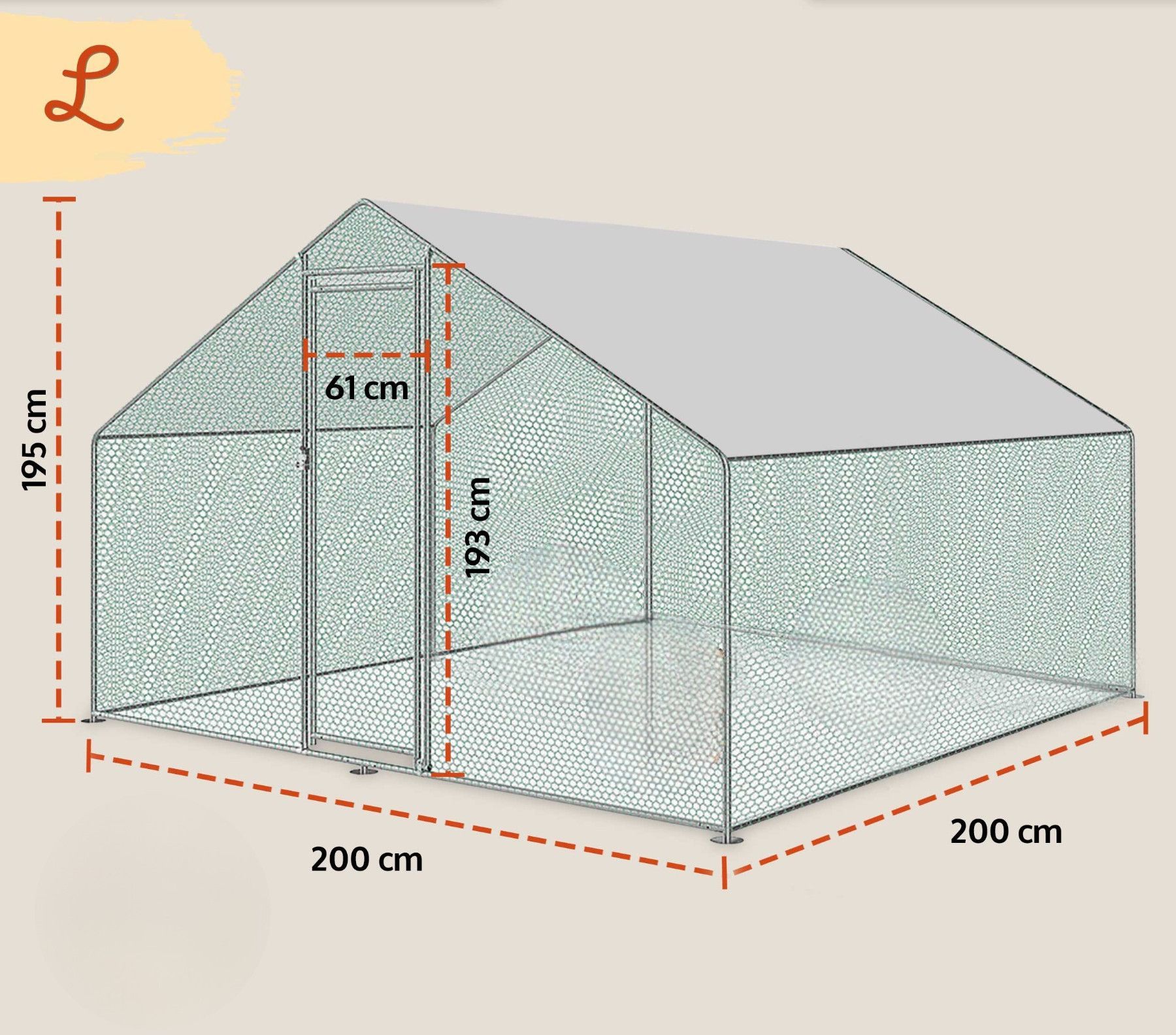 200x200x195cm aus Metall mit Sonnendach Regenschutz - Bitte beachten!! Das Geflecht Gitter kommt auf einer Rolle und muss somit zugeschnitten werden!!! Hühnervoliere Metall »L« Das Freilaufgehege aus Metall ist die ideale Lösung für die artgerechte Haltung von Hühnern, Kaninchen und anderen Kleintie