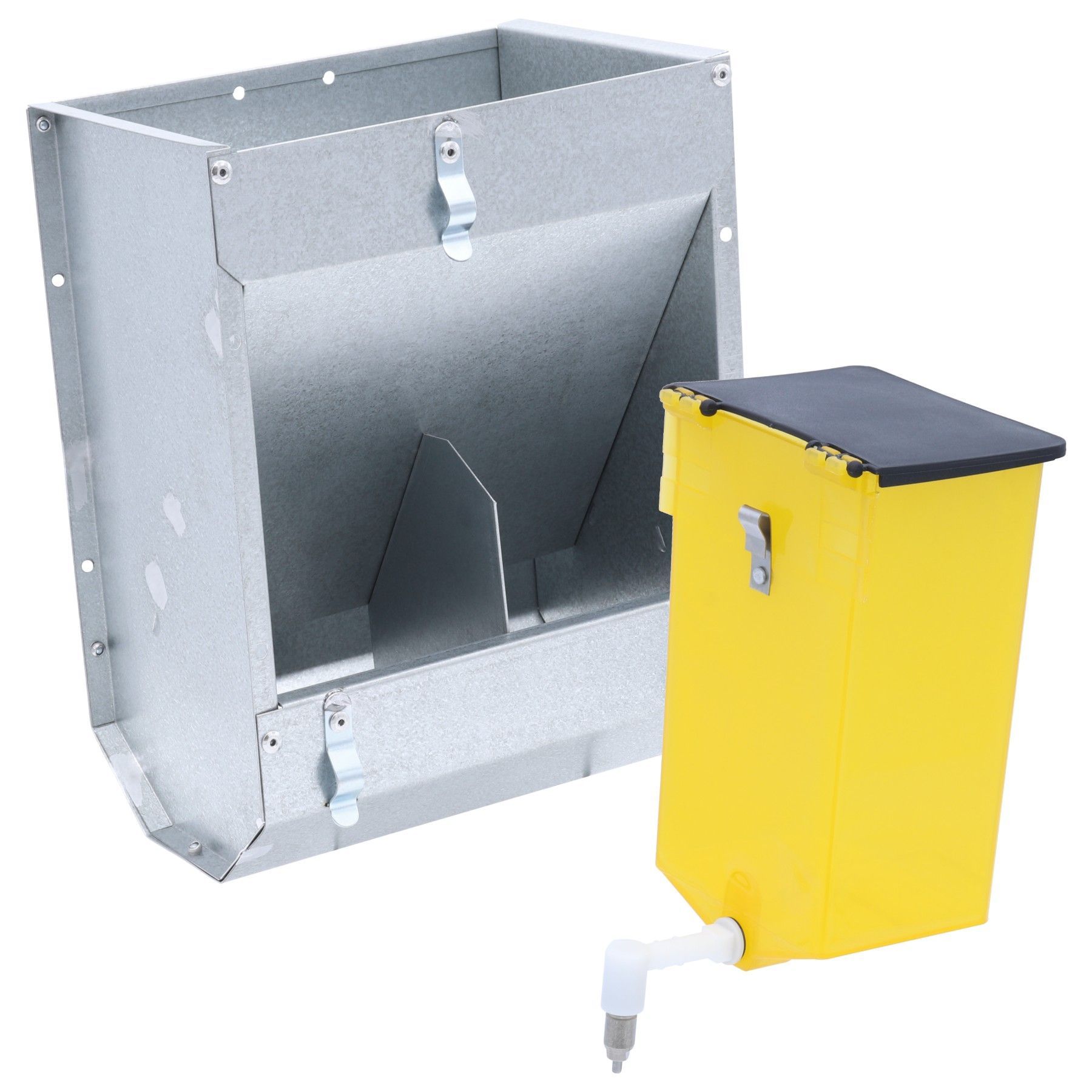 Kaninchen Set: Futtertrog 2,5kg + Tränke 1 Liter, Futterautomat und Nippeltränke