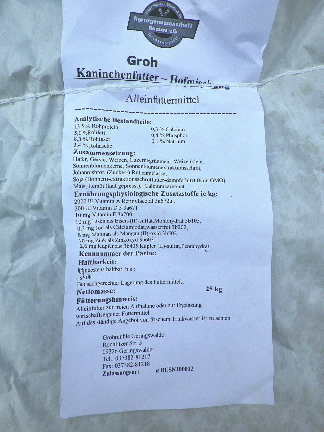 Kaninchenfutter Hasenfutter Alleinfutter Körner Hofmischung 5kg