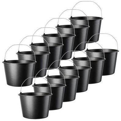 KADAX Baueimer, Mörteleimer aus Kunststoff, Wassereimer , Schwarz, 12L, 20 Stück