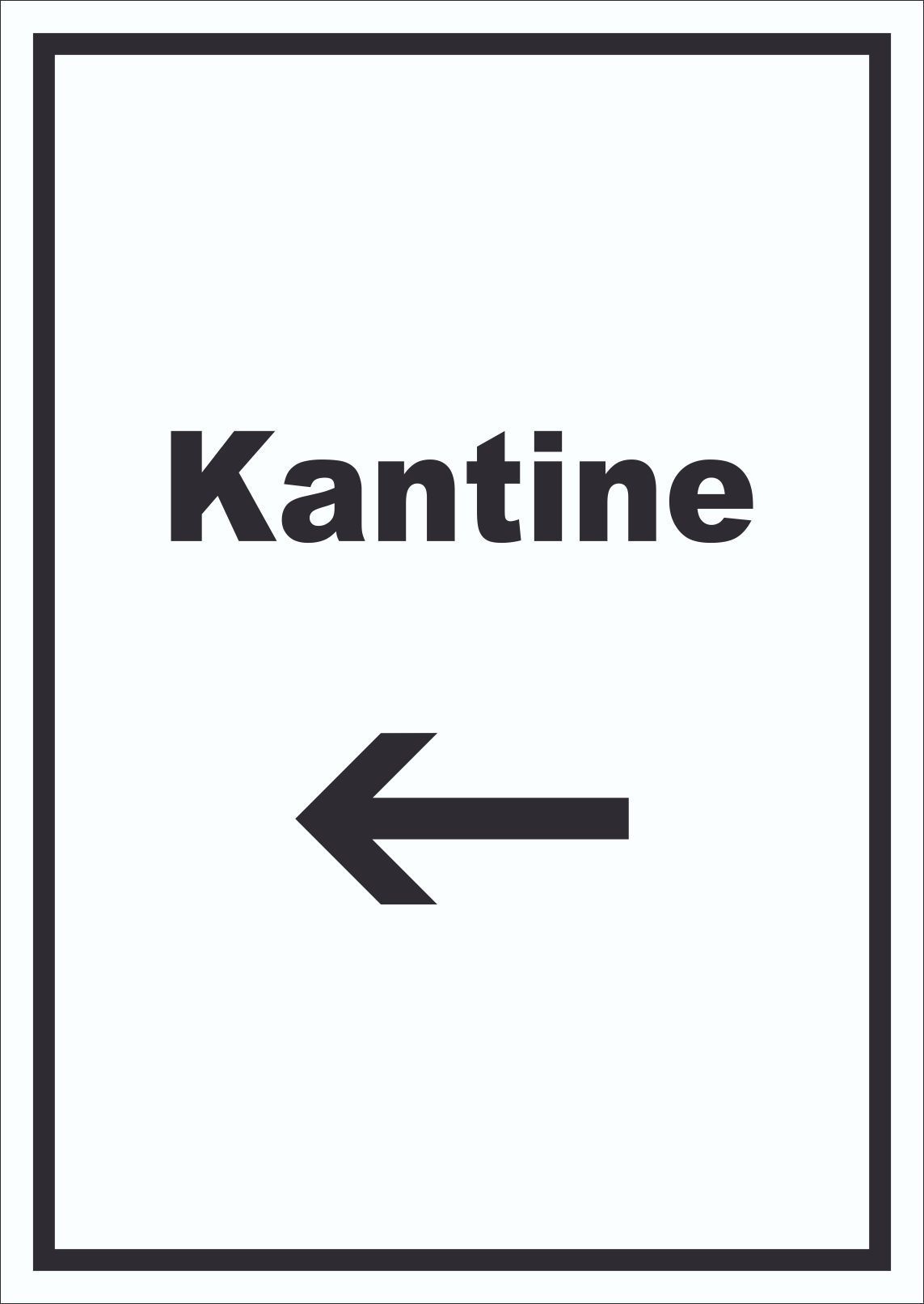 Kantine Schild mit Text und Richtungspfeil links essen und trinken hochkant