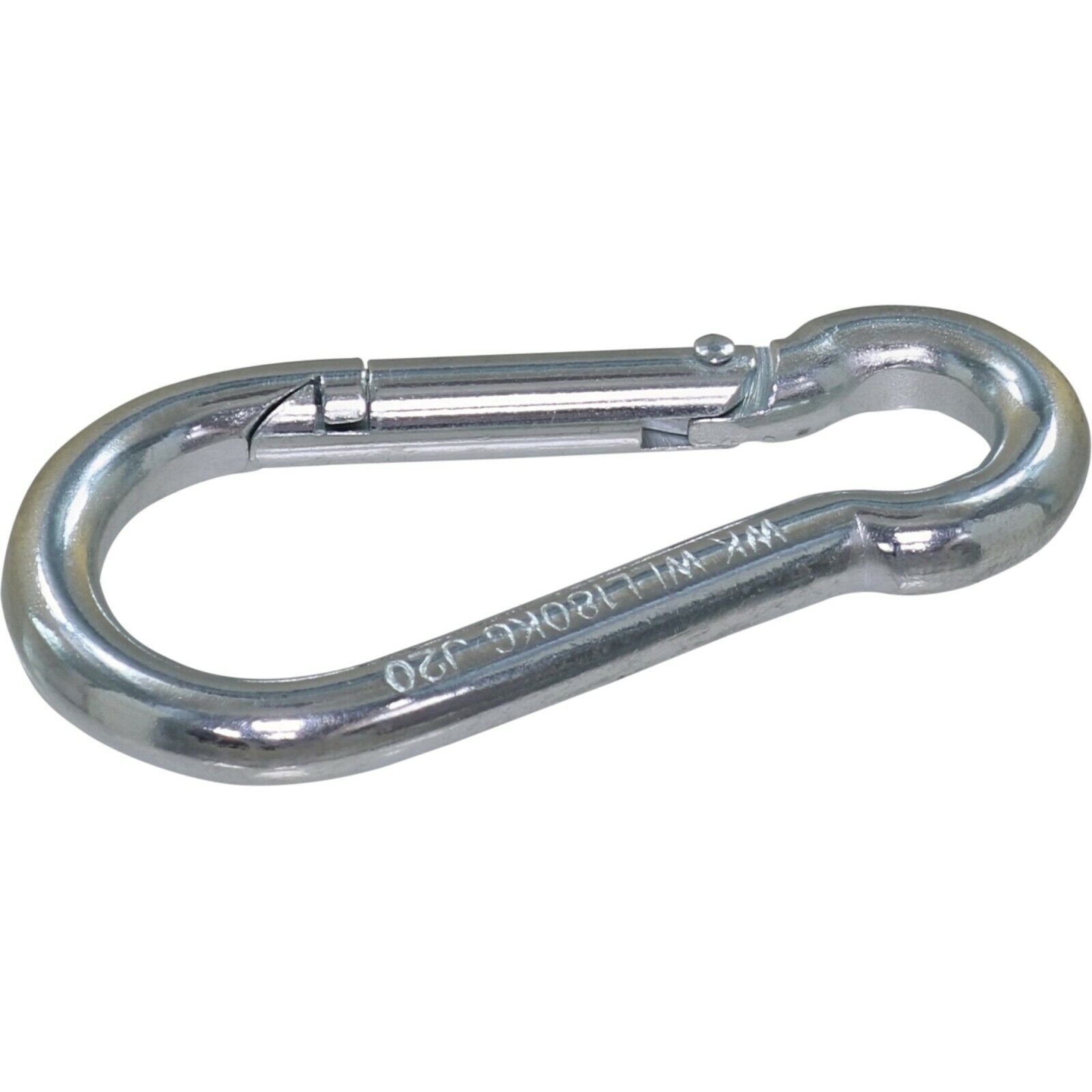 Karabiner-Haken nach DIN C 5299 Produktmerkmale : Hochwertige Karabinerhaken aus Metall DIN 5299 C geprüft 4 Größen: 60 mm, 70 mm, 100 mm und 120 mm Lastkraft: 120 kg (60 mm), 180 kg (70 mm), 350 kg (100 mm) und 350 kg (120 mm) Material: Stahl verzinkt Mit Feder Montage: per Hand Sehr witterungsbest