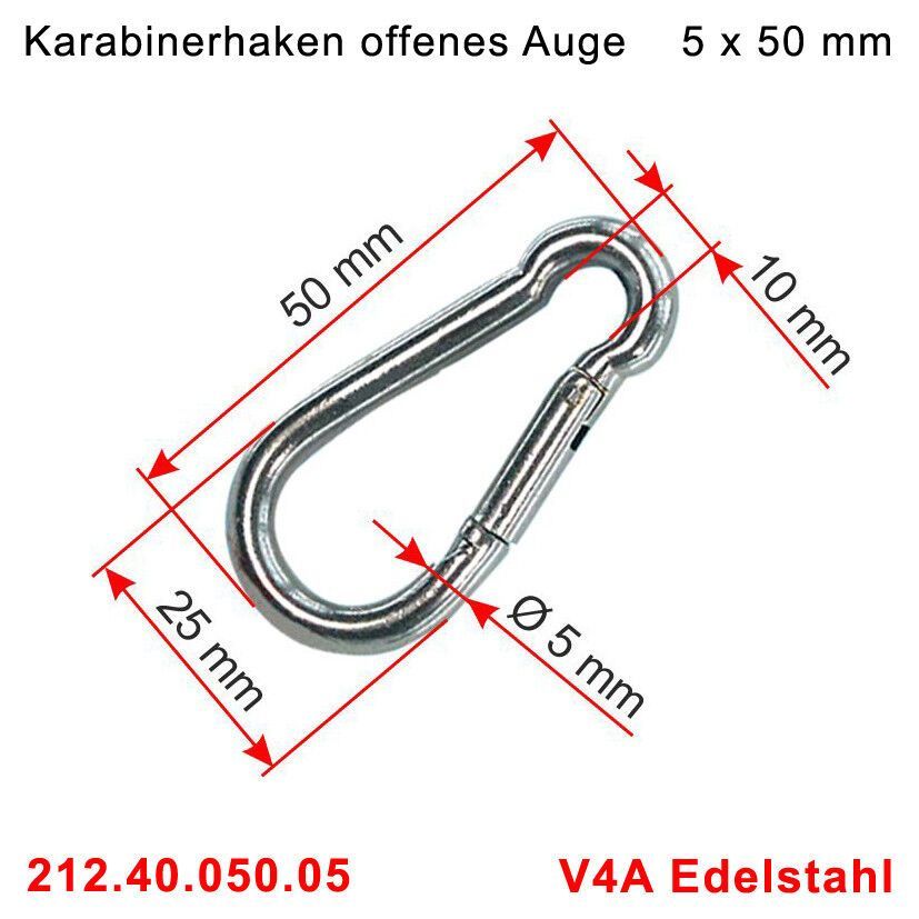 Karabinerhaken V4A Edelstahl Nirosta Niro A4 AISI 316 Boot 30 40 50 60 mm