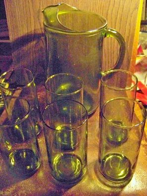 • Set 1,7 Liter Saftkrug + 6 Gläser (oder für Longdrinks) 80er grünes Glas - 1a
