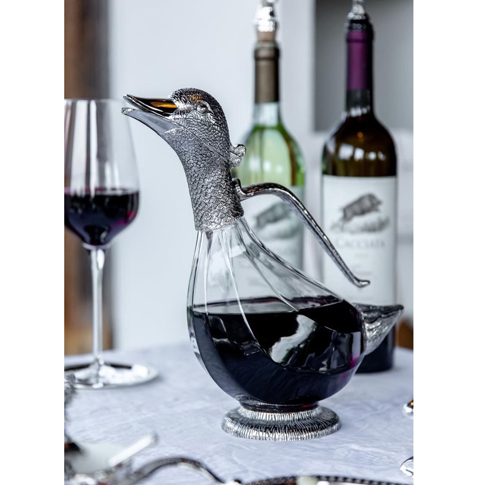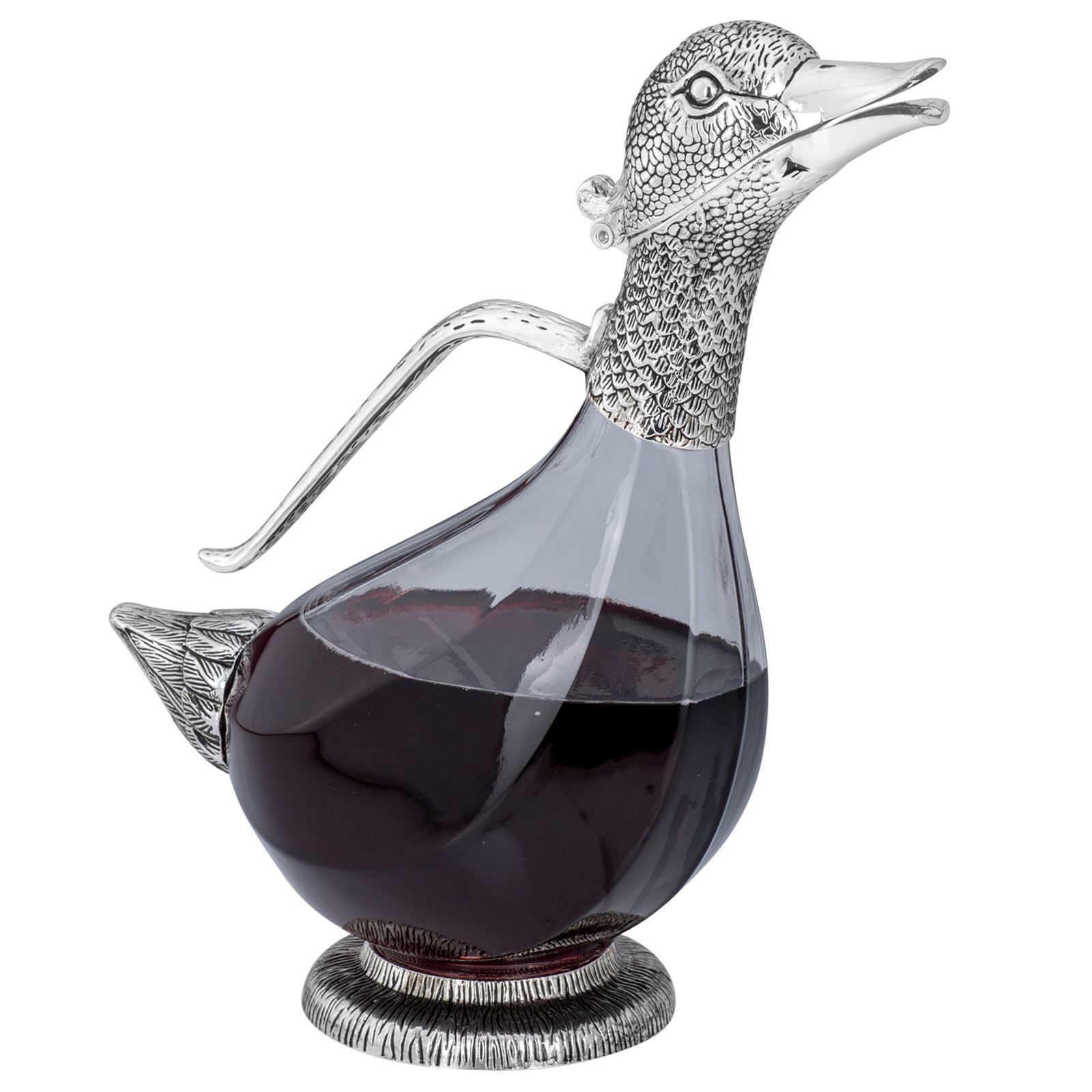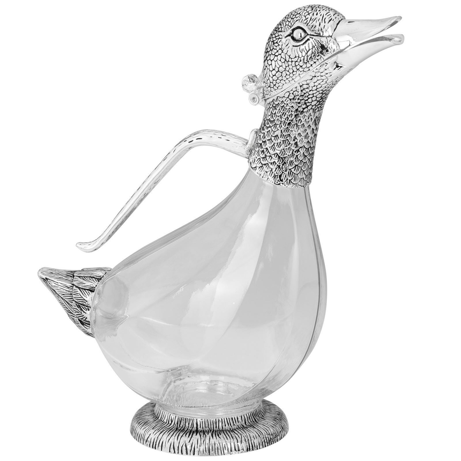 Karaffe 27 cm Glas-Dekanter 1 Liter Ausgießer Enten-Form versilbert Weindekanter