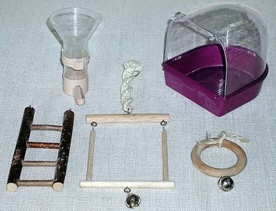 • Vogelbadewanne / Futternapf / Leiter / Schaukel / Spielring