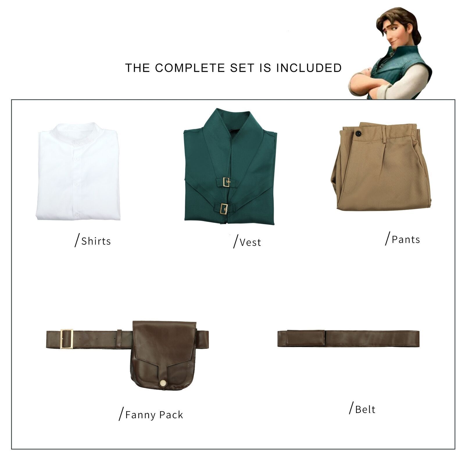 Karneval Cosplay Tangled Flynn Rider Kostum Outfit Uniform Anzug Herrenkostume