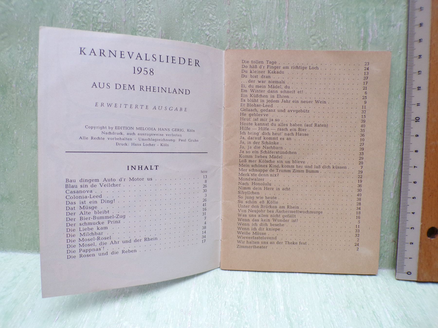Kinderbuch Bücher Bilderbuch und andere ... Erinnerungen ..... . . Artikelauswahl Karnevalslieder aus dem Rheinland 1958 Edition Melodia Hans Gerig .Köln vollständige Tesxtausgabe 50 Pfennig Heft mit 41 Seiten : gut+ und oder rot und grün 1962 Jet för ze laache Kölnische Rundschau Heftchen mit 32 Se
