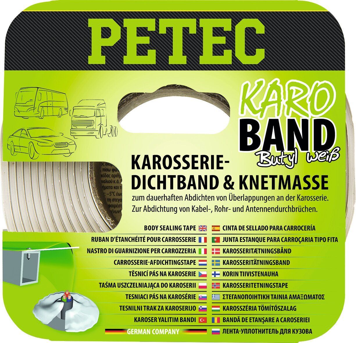 Zum Abdichten von Fugen, Hohlräumen, Stößen, Falzen, Nähten und Überlappungen an Karosserie- und Blechteilen (z. B. Kotflügel, Durchbrüche, Durchführungen, Schutz- und Zierleisten, Scheinwerfer, Brems- und Rückleuchten, Kennzeichenunterlagen, Spoiler, Türfolie, Türverkleidung u.v.m.) gegen Feuchtigkeit, Staub und Zugluft.
