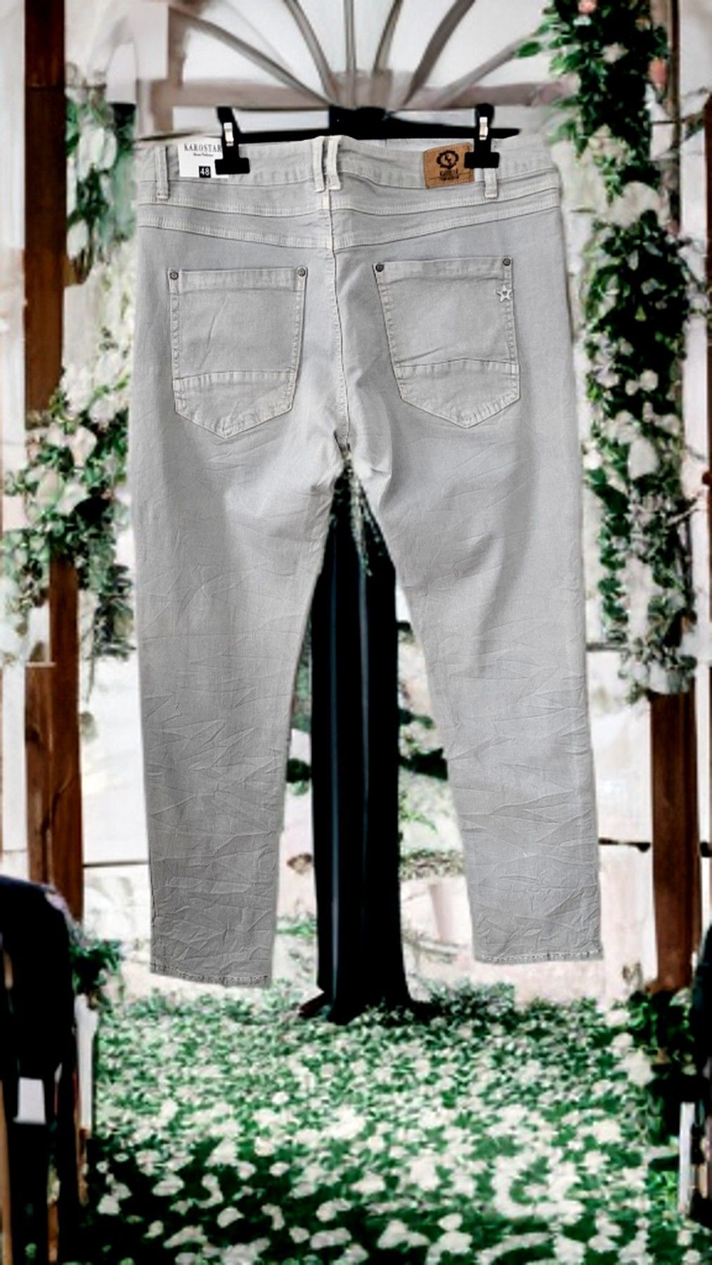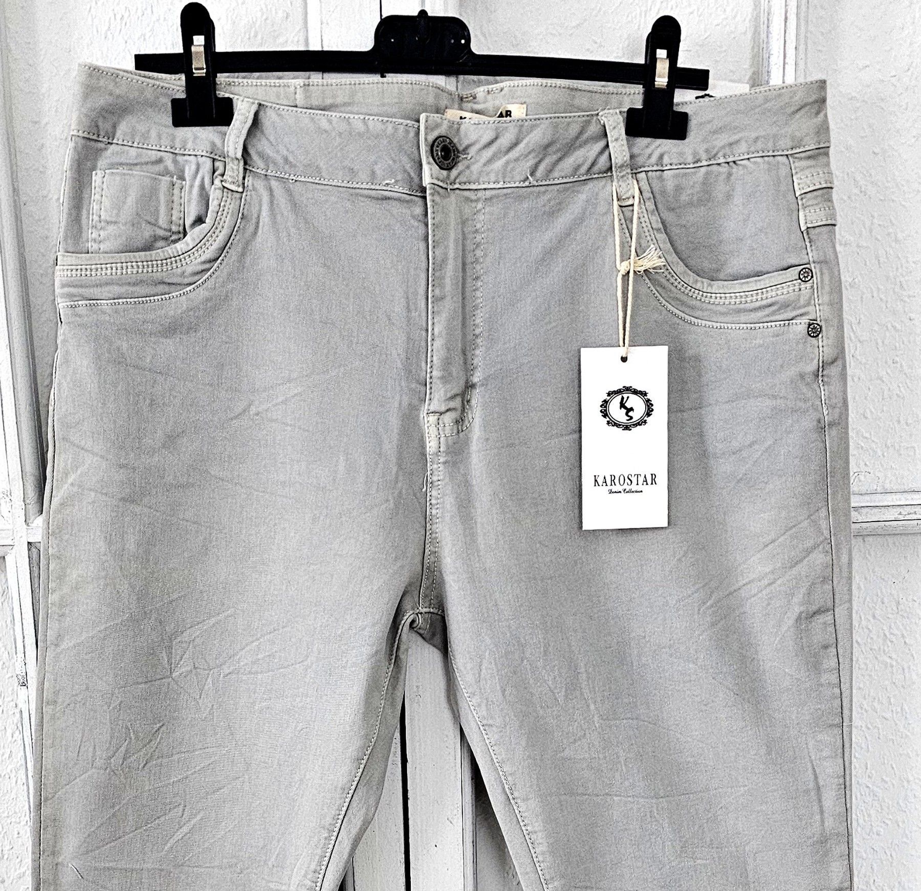 Karostar Damen Hose Stretch Jeans Knopf/RV Taschen Gürtelschlaufen Hellgrau Gr. 48
