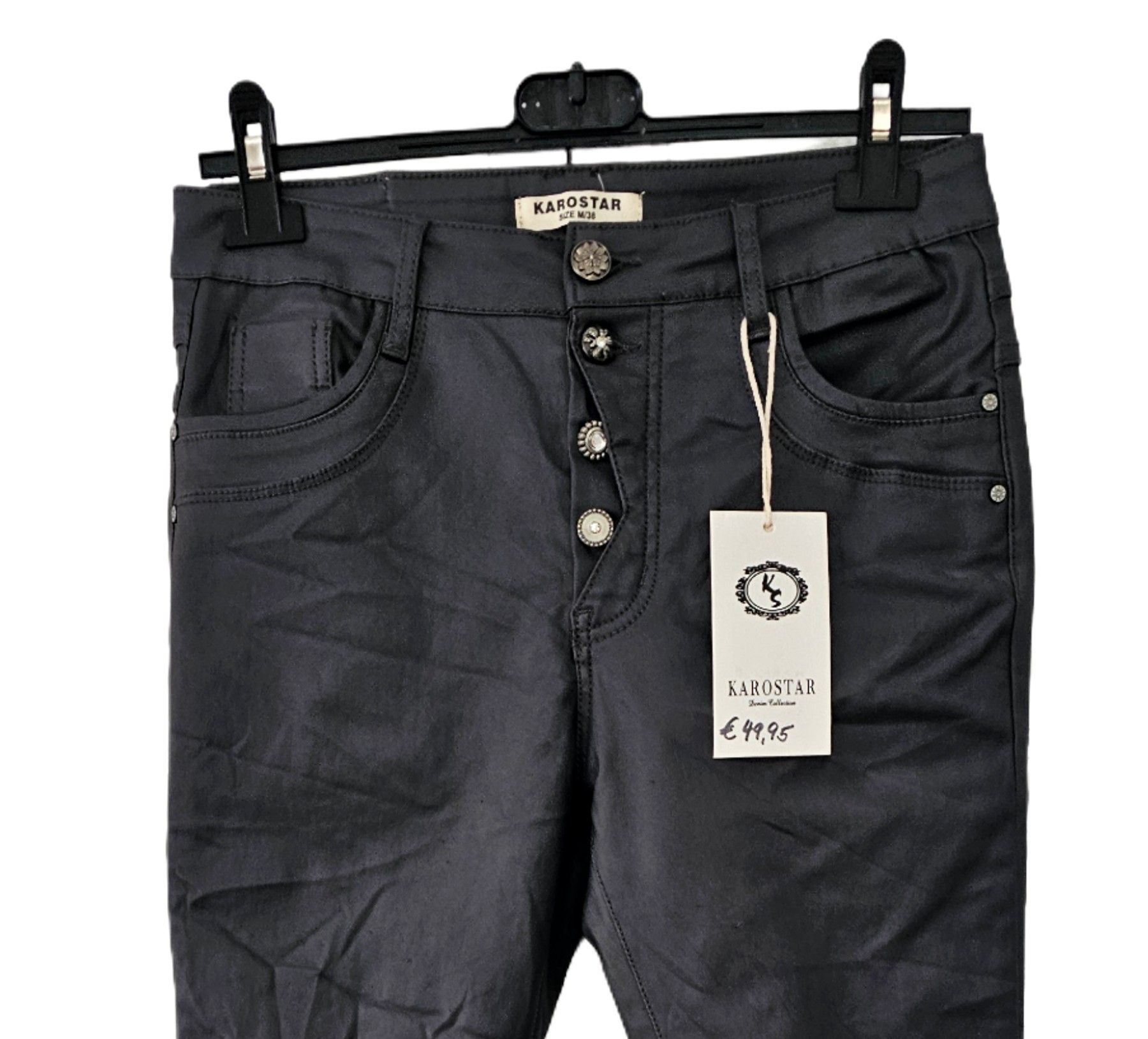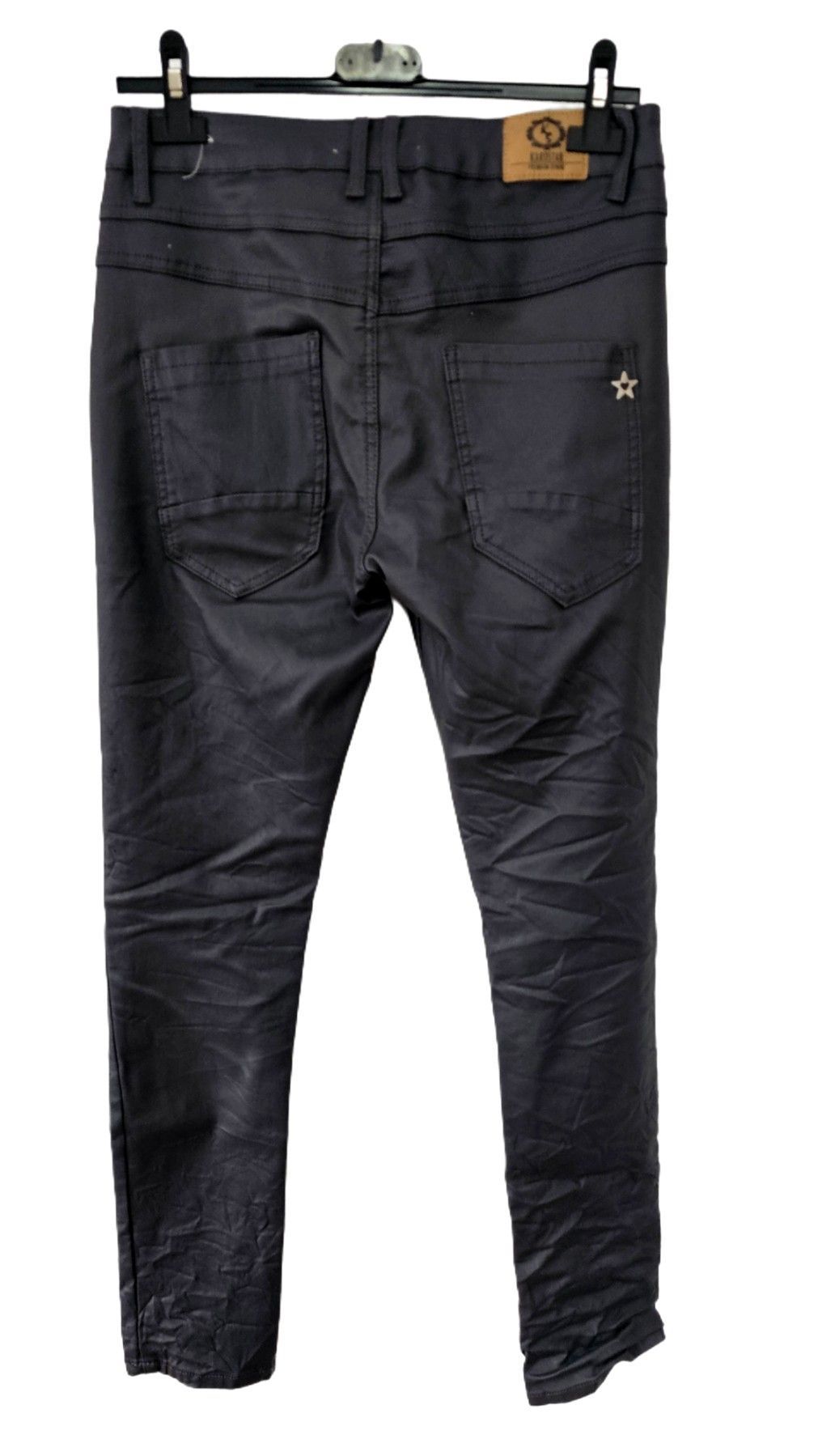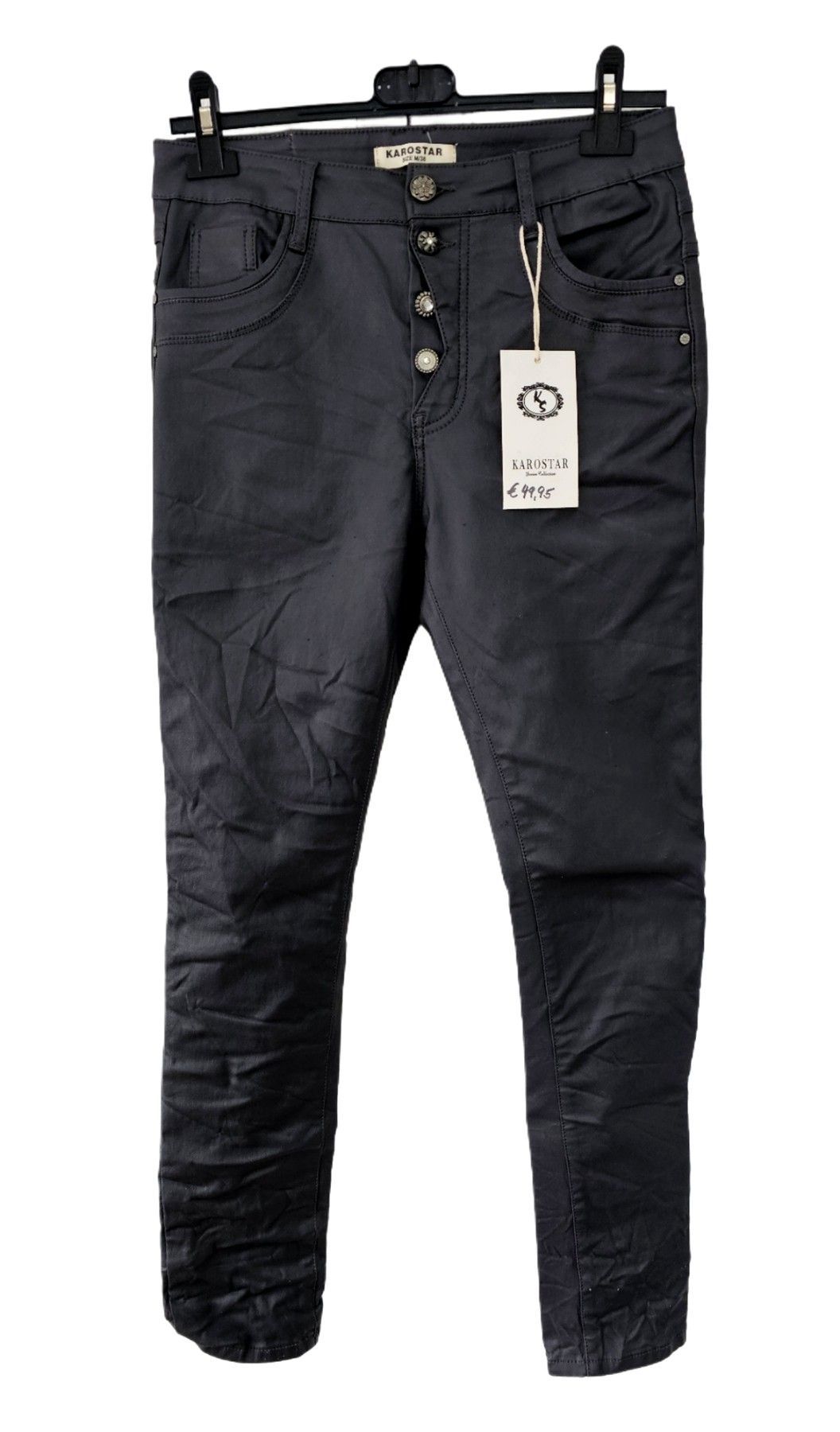 Karostar Hose Lederimitat Kunstleder Knöpfe schmales Bein Gr. 38 Dunkelgrau