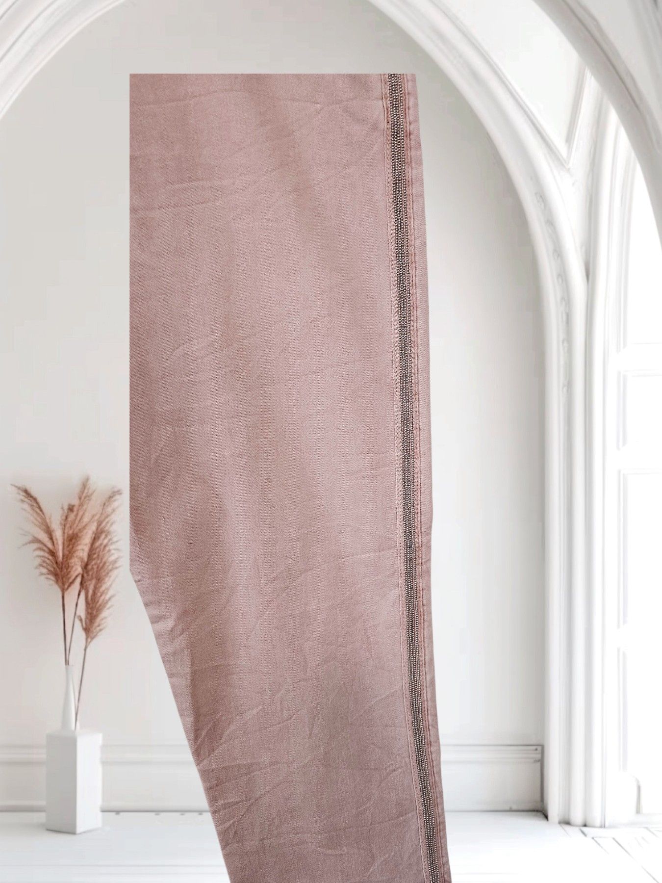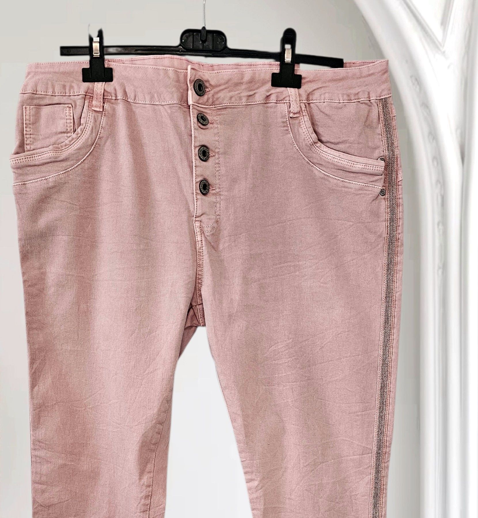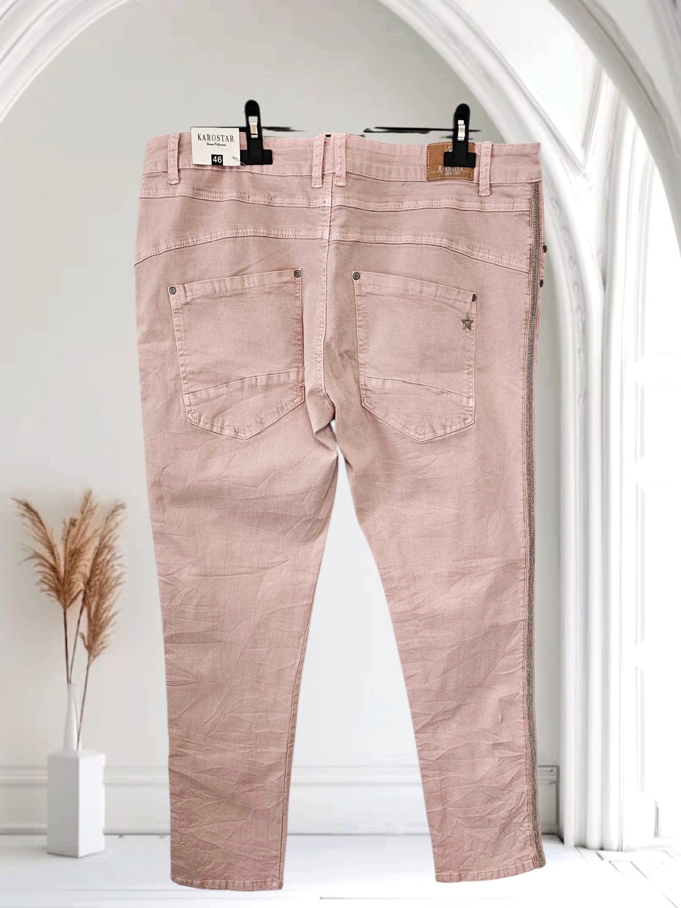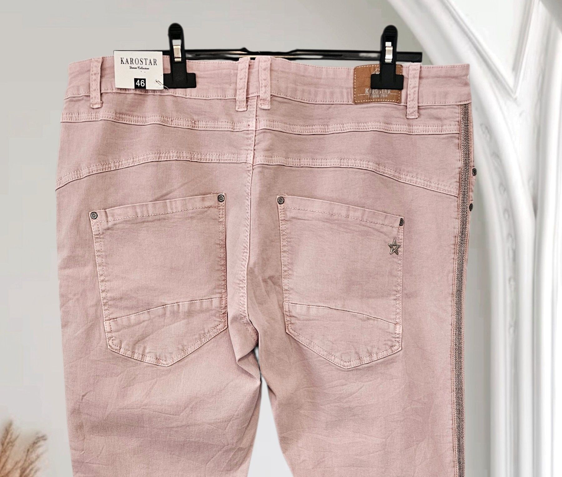 Karostar Hose Stretch Jeans Knöpfe Taschen Seitenstreifen mit Nieten Altrosa Gr. 46