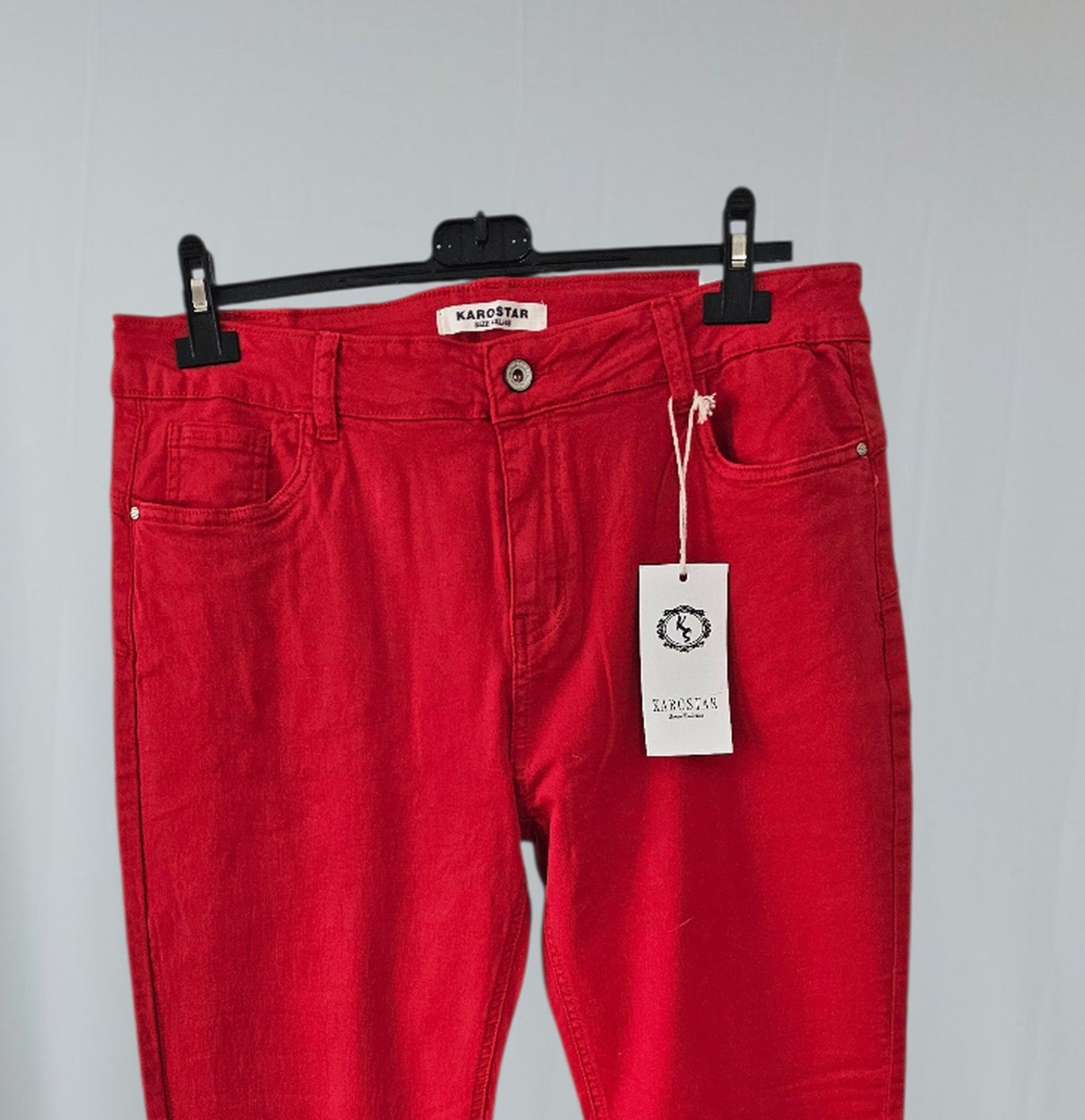 Karostar K001-19 Damen Jeans Hose Stretch Five Pocket Knopf/RV in Rot Gr.4XL/48