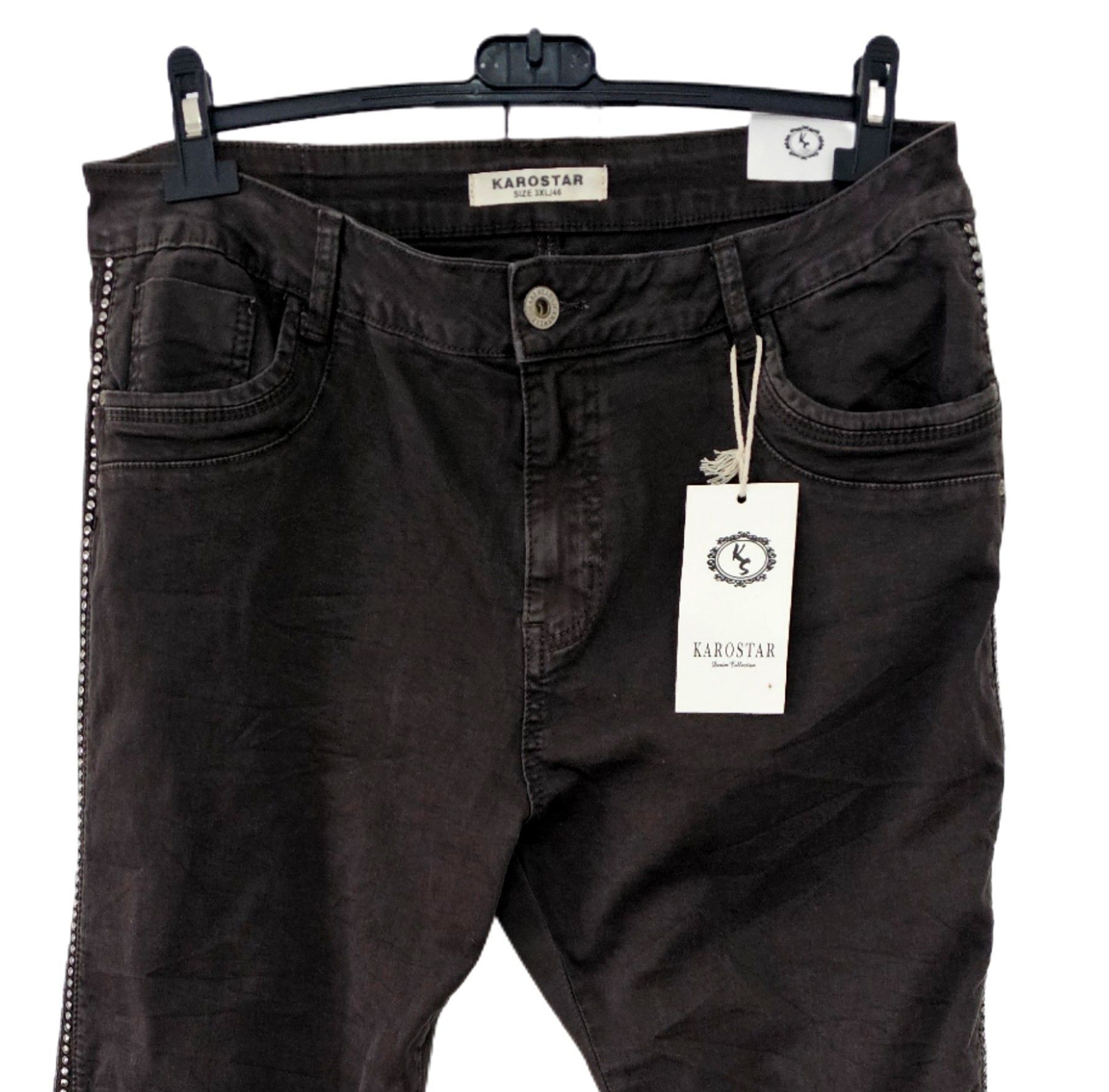 Karostar K8203 Jeans Hose Stretch Five Pocket Knopf/RV Nieten Dunkelbraun 3XL/46