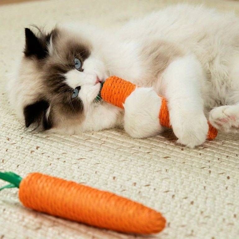 Karotte mit Rassel Kauspielzeug für Katzen 20cm