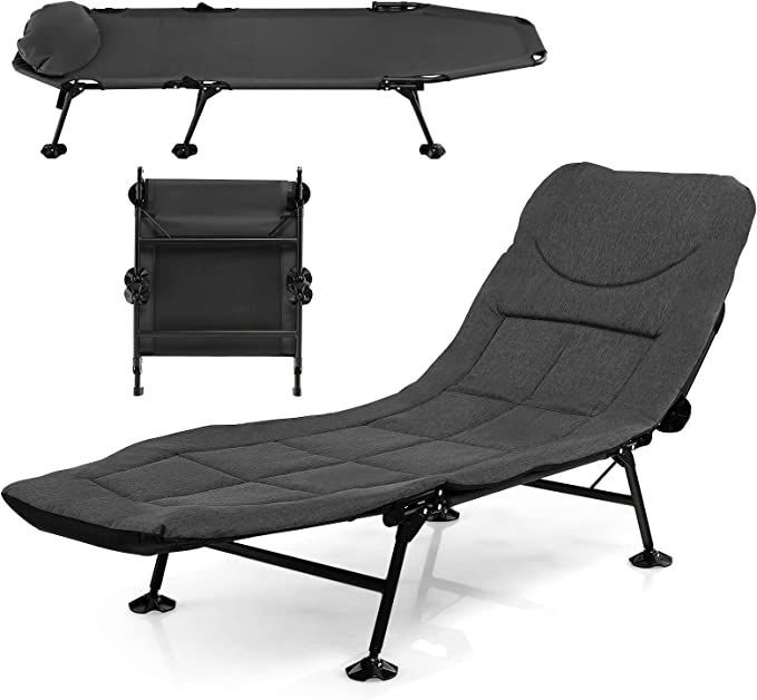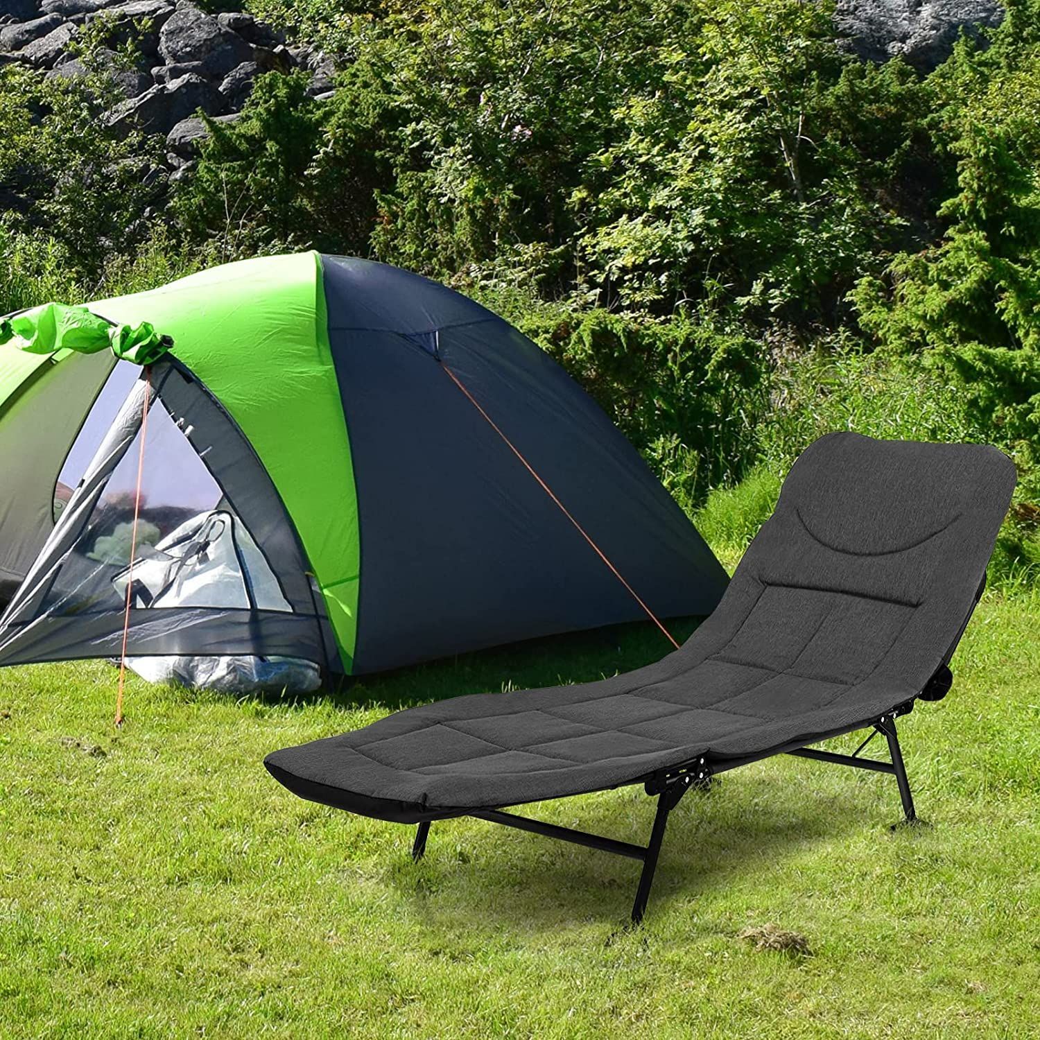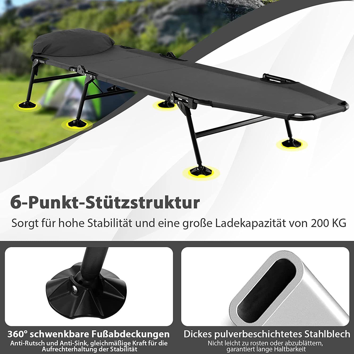 Karpfenliege mit Abnehmbarer Matratze, 6-Fach Verstellbarer Rückenlehne, Feldbett