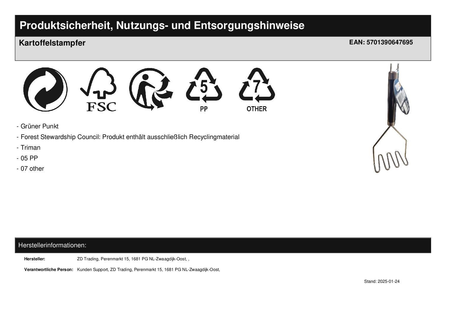 Triangle Kartoffelstampfer 73 705 08 00/Abverkauf nur solange Vorrat reicht