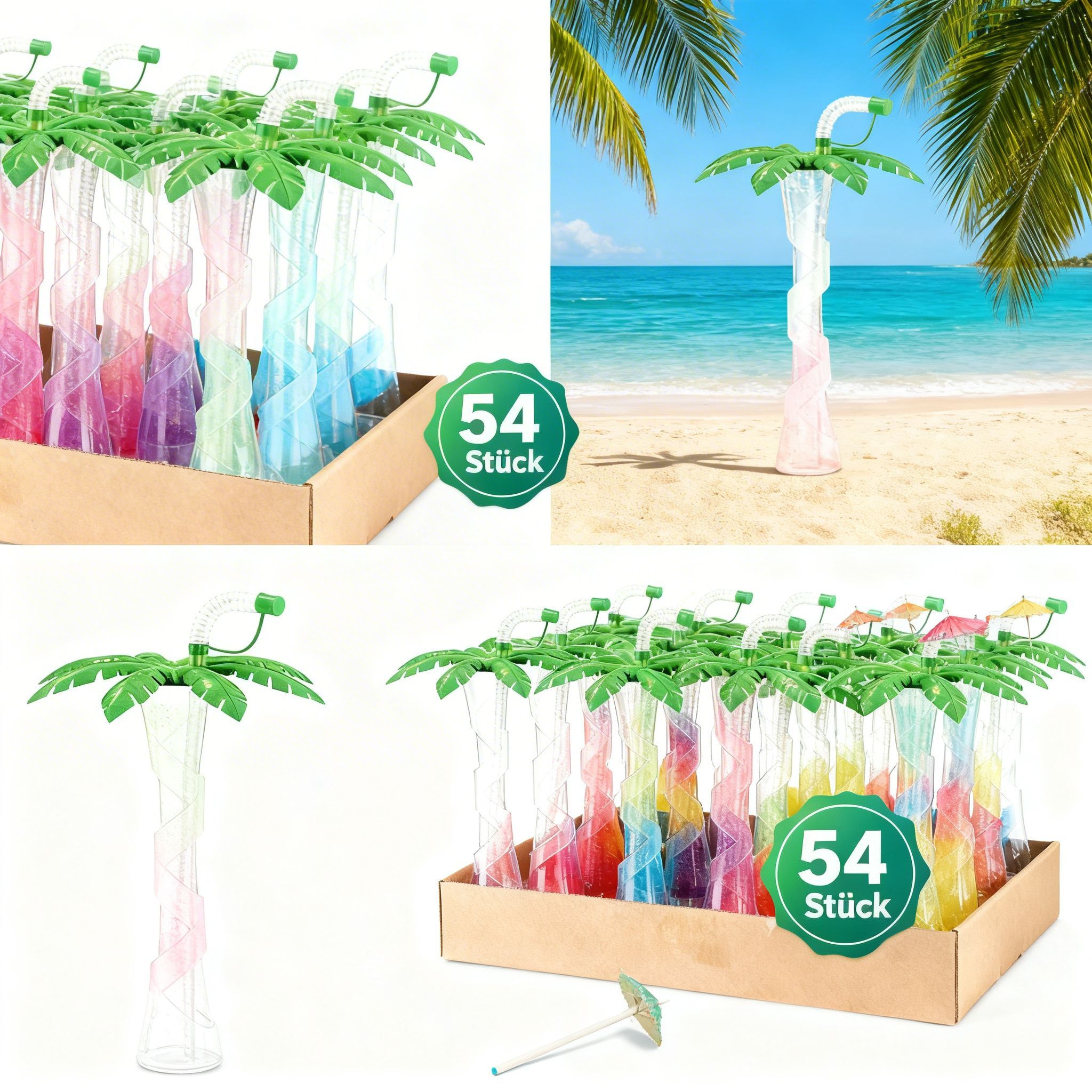 Karton Slush Cups Palmen Design 54 Stück 400 ml Mehrweg Slush Becher mit Strohhalm BP
