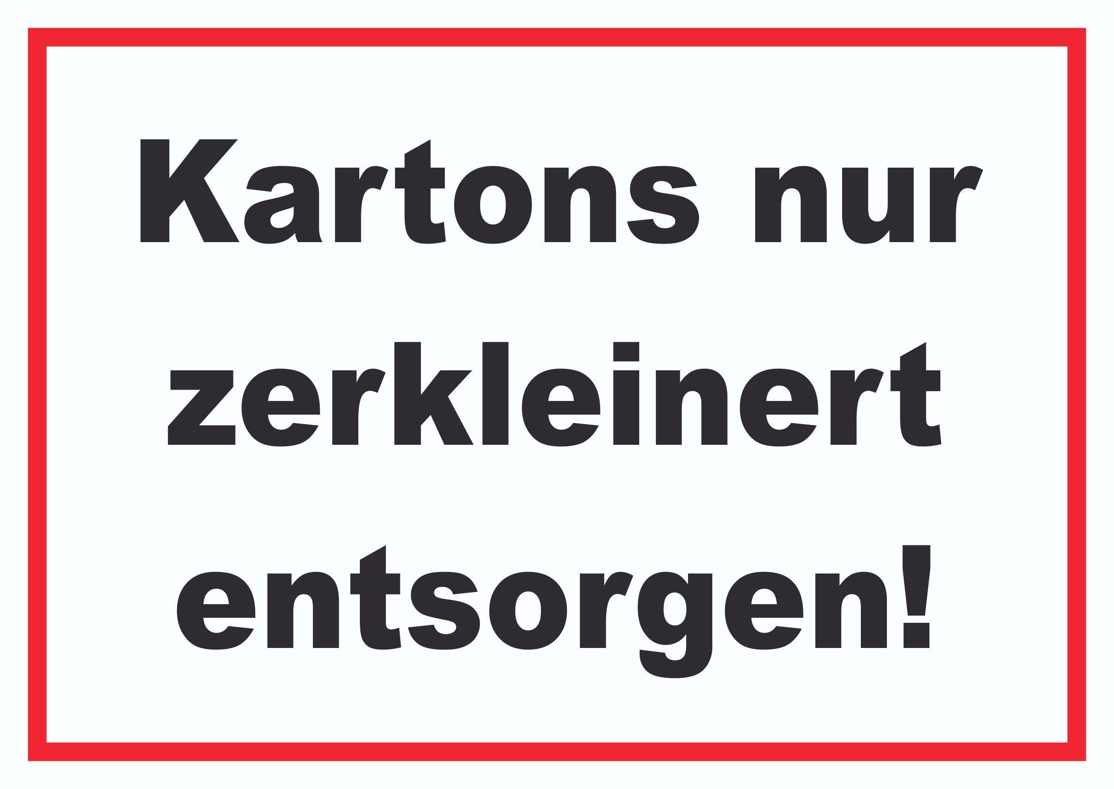 Kartons nur zerkleinert entsorgen Schild