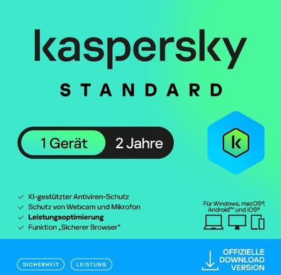 • Kaspersky Standard Security 2026 - 1 Device / 2Jahre - Win/Mac/Android/iOS - Per Mail