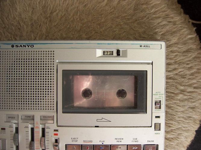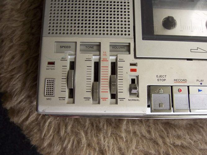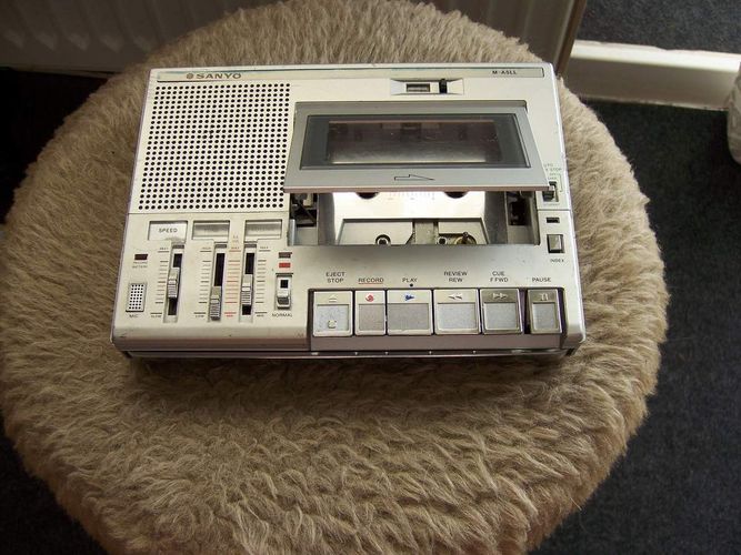 biete einen Kassettenrekorder Sanyo voll funktionstüchtig ° die Mechanik läuft : V-R-spulen, Play funktionieren, Aufnahme auch OK ° Bandzählwerk funktioniert , alle LED's leuchten je nach Funktion ° Batteriedeckel nicht original, selbst gebastelt ! ° Buchsen für extern. Netzteil , Ko