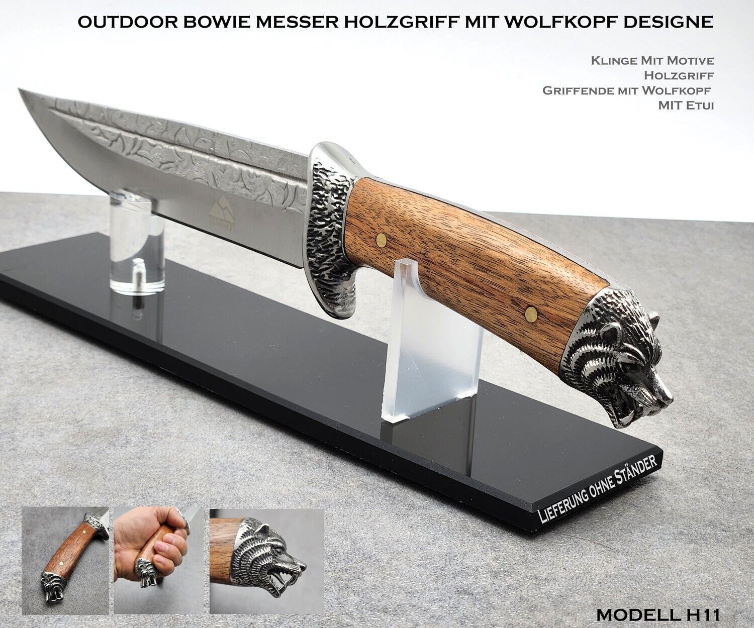 KaSul® H11 | Wolf Griff Bowie Messer Outdoormesser 31 cm + Tasche Motiv Klinge