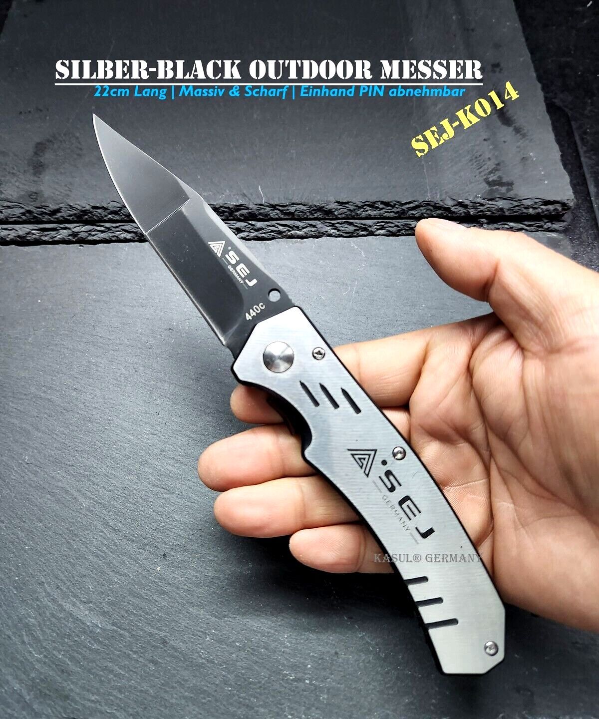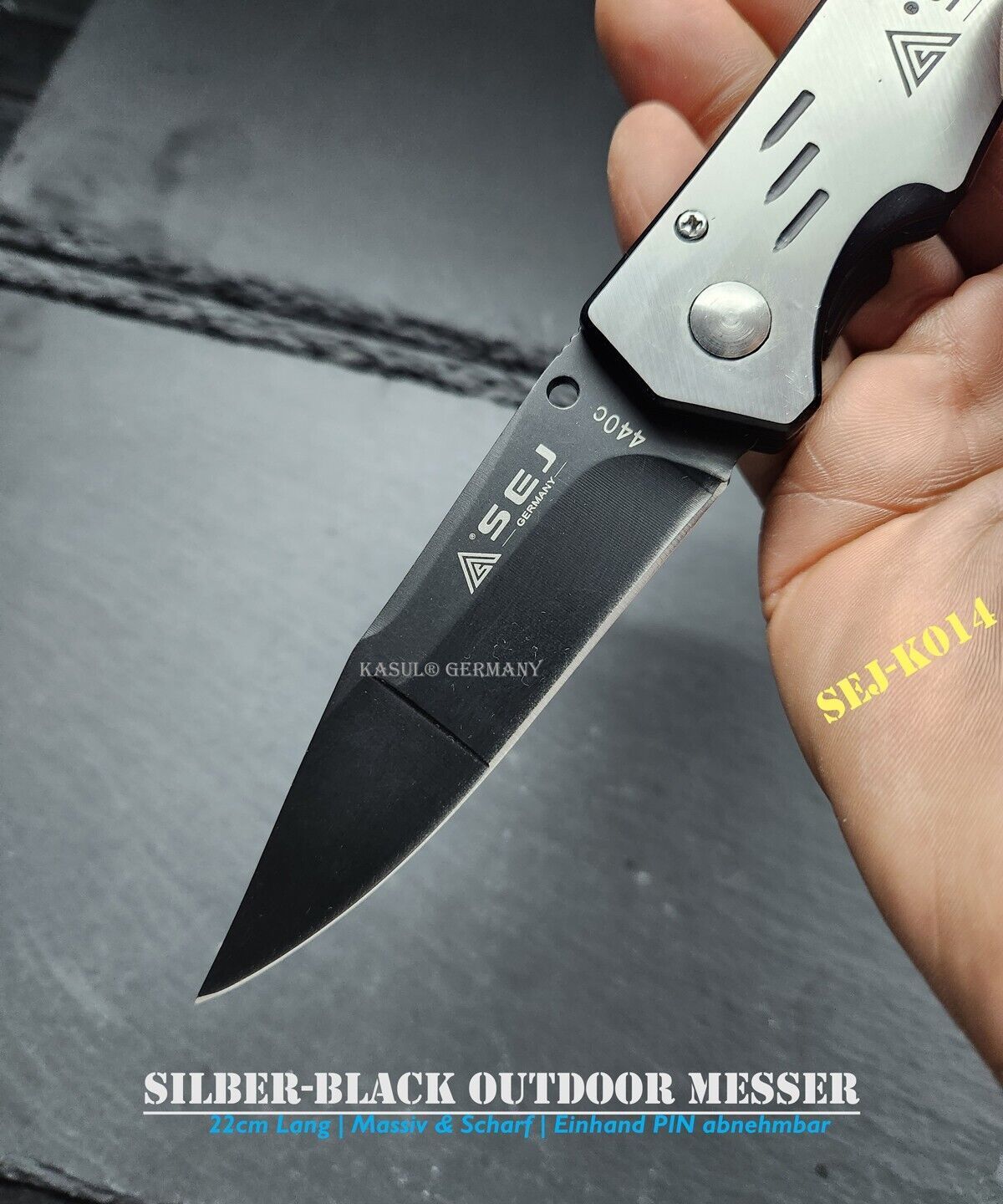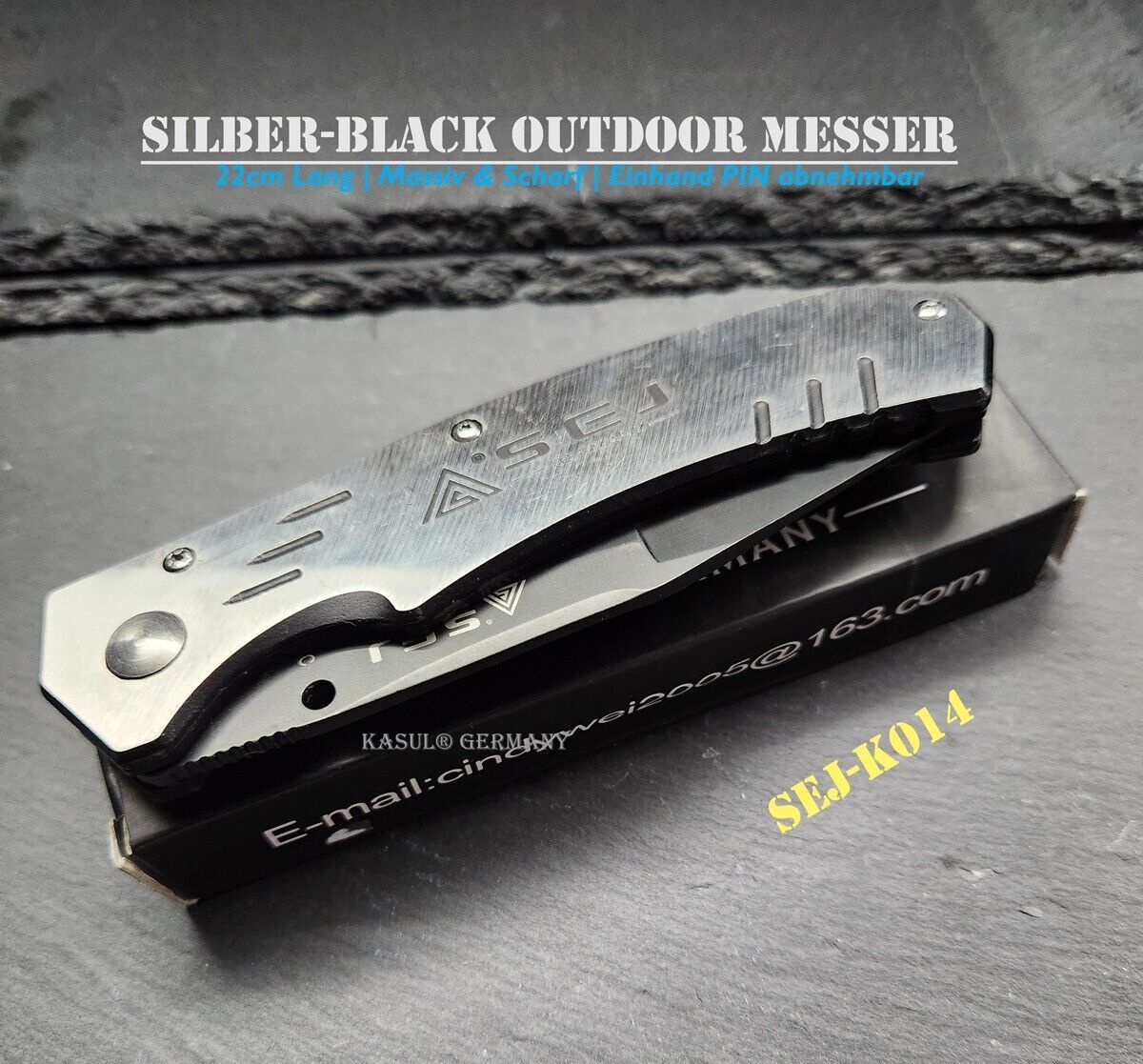 KaSul®| Silber-Alu Optik SEJ-K0014 Taschen Messer Klappmesser Outdoor Jagdmesser